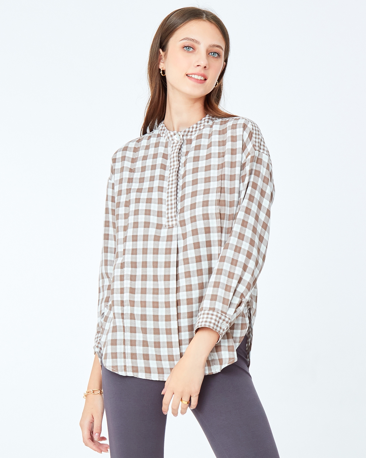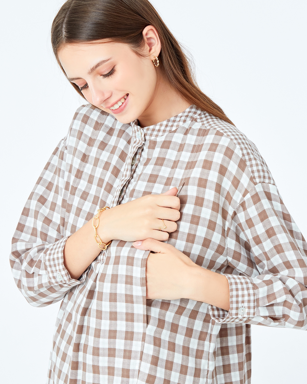Whether you are heading for an outdoor activity or work, long-sleeved nursing shirt is your definitely choice that gives you easy fashion but looks chic. Made from 100% cotton to keep you feel comfy on warm days. You will never be worried about nursing your little one because of the functional nursing panel that is very easy to use.