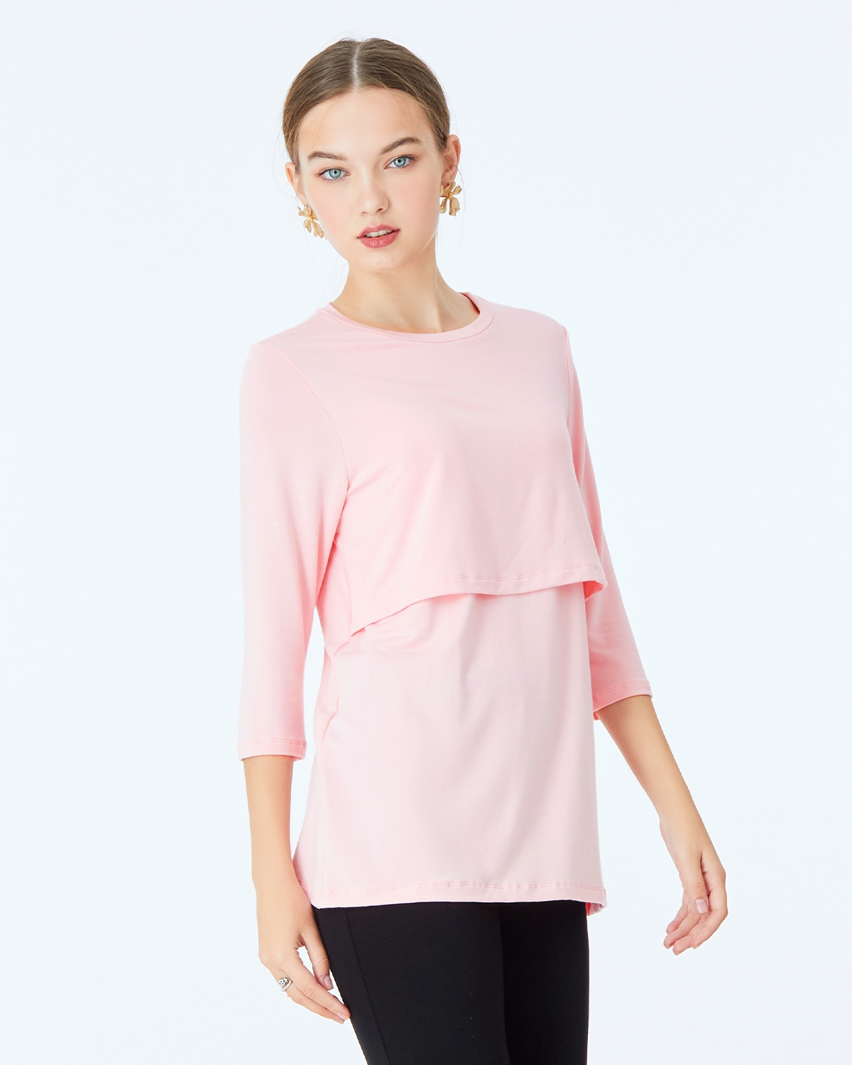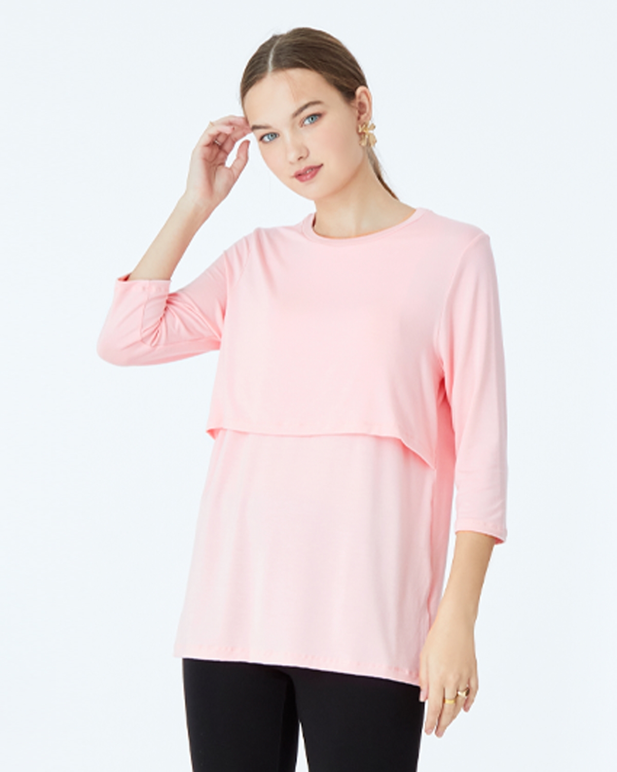 Magnolia, nursing top with 3/4 length sleeves made from soft fabric, feel comfortable to wear all day long. Allow you to access nursing easier with well-design of the front panels at home and outside. This one is must-have basic that you should own.