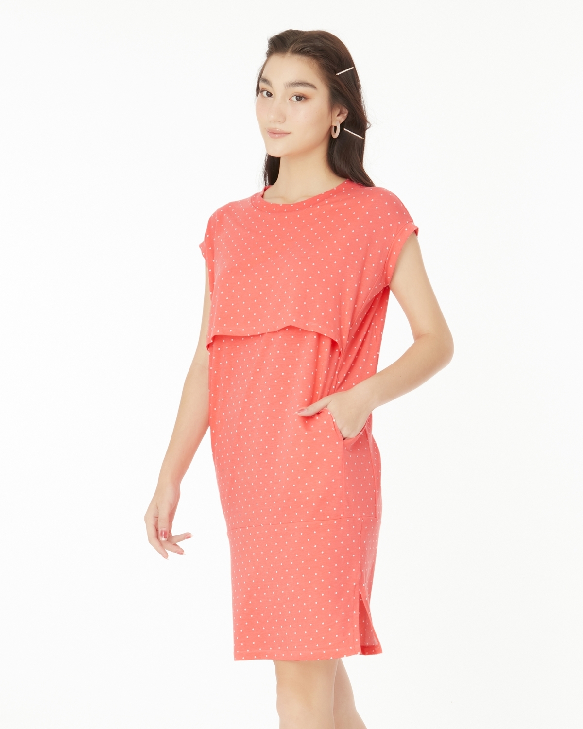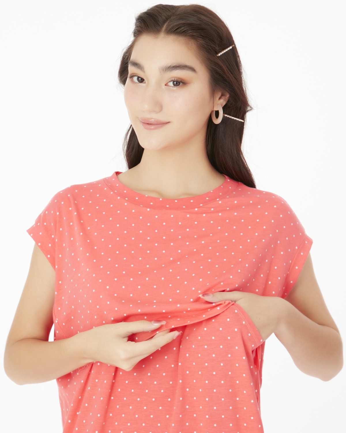 The Petite version of our bestselling Signature nursing dress is slightly oversized with a flattering cap sleeve and straight silhouette. Crop front detail enables you to discreetly nurse your baby anywhere. Super soft, comfortable jersey fabric with cooling effect available in this brightful classic dot print.