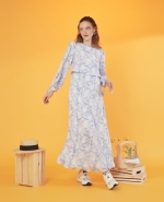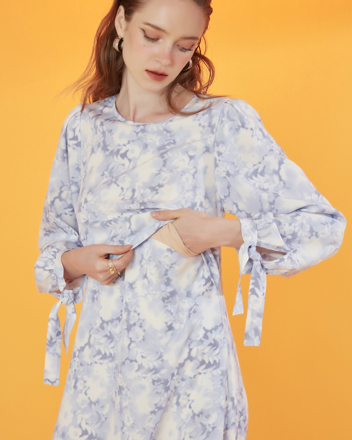 Elegant & sophisticated A-line long sleeve nursing maxi dress that gently sways as you move. Sweet and pretty princess puffs at shoulder with bow details at cuff. Look instantly polished for a formal event whilst always being ready to breastfeed your baby discreetly and comfortably thanks to crop front panel.