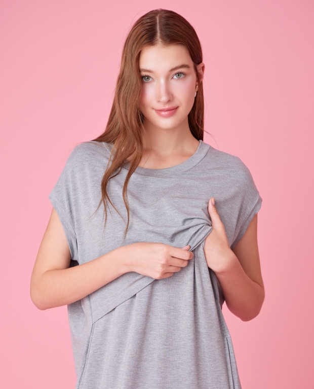 Our bestselling signature nursing dress is slightly oversized with a flattering cap sleeve and straight silhouette. Crop front detail enables you to discreetly nurse your baby anywhere. Super soft, comfortable jersey fabric with cooling effect available in many colors.