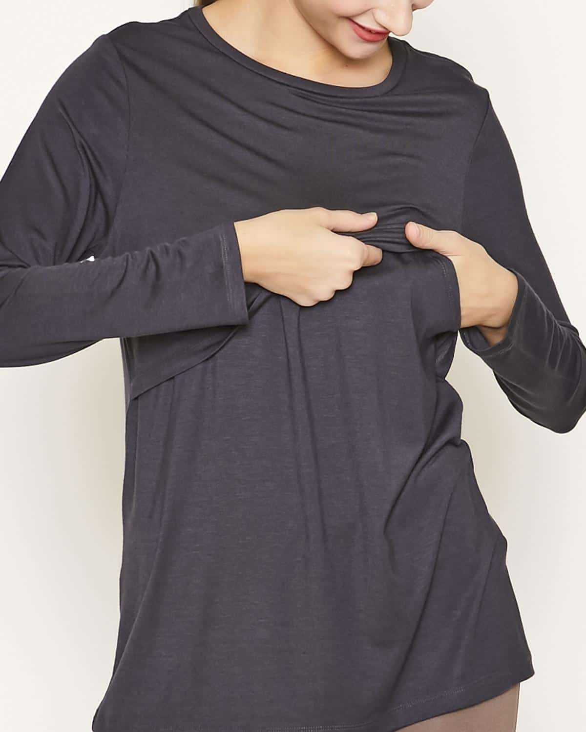 Get comfy in Comfrey, long-sleeved nursing top with round neckline. Made from soft fabric, you can wear it for both office and casual days. Make your life better to access nursing anytime, anywhere. Available on basic shades for easy matching.