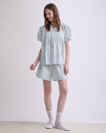 Dreamy short sleeve nursing pyjamas with matching short trousers. Super comfortable soft touch 100% Korean Satin that will keep your dreams sweet and your baby happy. It allows you to breastfeed your baby very easy or pumping at night.