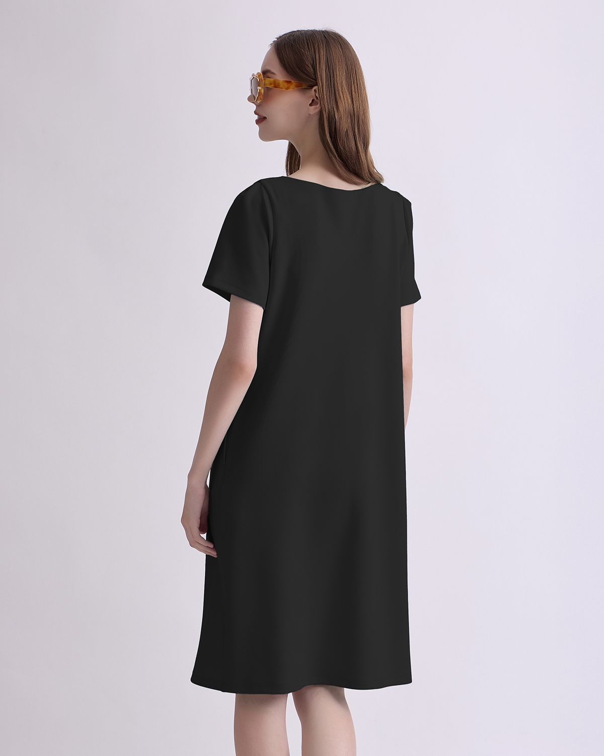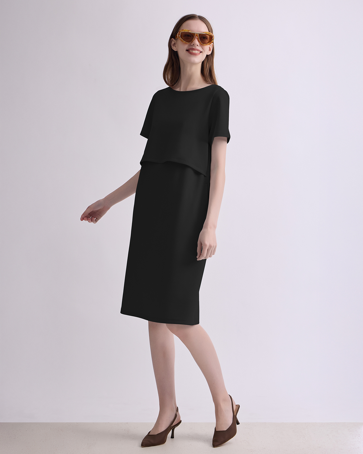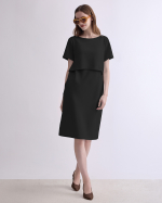 Modern and minimal short sleeve nursing dress with delicate pleat at the shoulder.