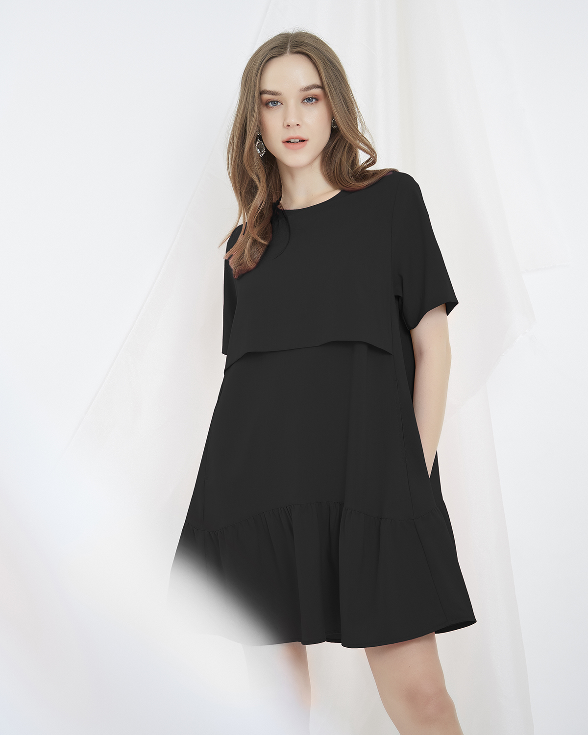 ชุดเดรสให้นมบุตรแขนสั้นสไตล์มินิมอลสุดน่ารัก เพิ่มเติมความหวานสดใสด้วยกระโปรงชายระบาย เนื้อผ้าทิ้งตัวช่วยเสริมให้ดูสวยเข้ากับรูปร่าง กระโปรงทรงเอช่วยพรางสะโพกได้ดีสำหรับคุณแม่หลังคลอดที่รูปร่างยังไม่เข้าที่ ช่วยให้คุณแม่มีความมั่นใจในการสวมใส่เสื้อผ้ามากยิ่งขึ้น ให้นมบุตรได้สะดวกสบายไม่ต้องกลัวโป๊ไม่ว่าจะในหรือนอกสถานที่ และยังเป็นชุดที่สามารถสวมใส่ได้สำหรับในทุกๆ โอกาส