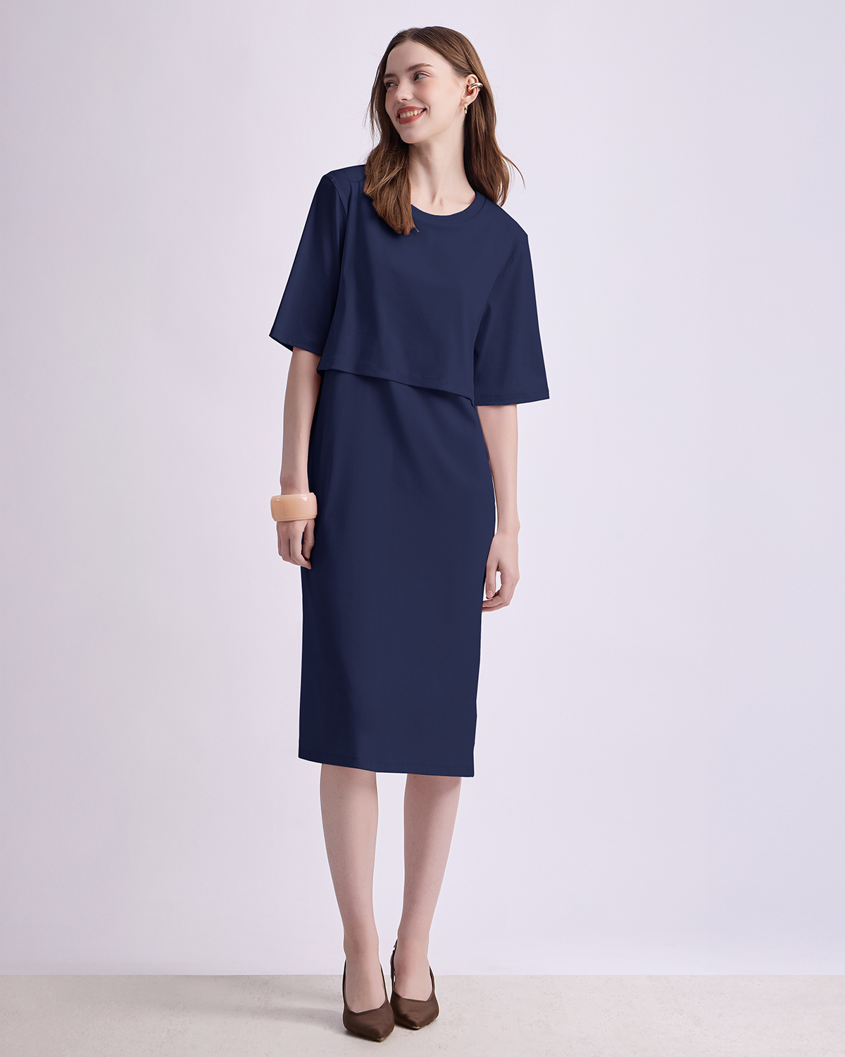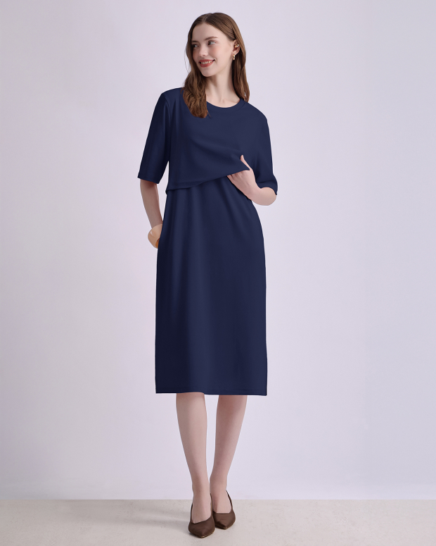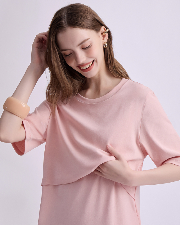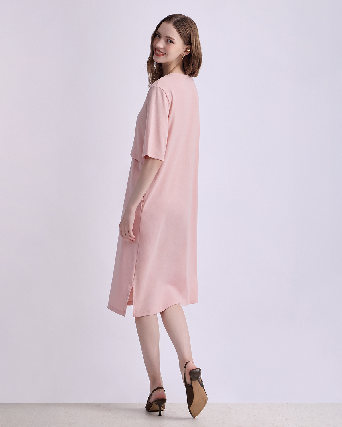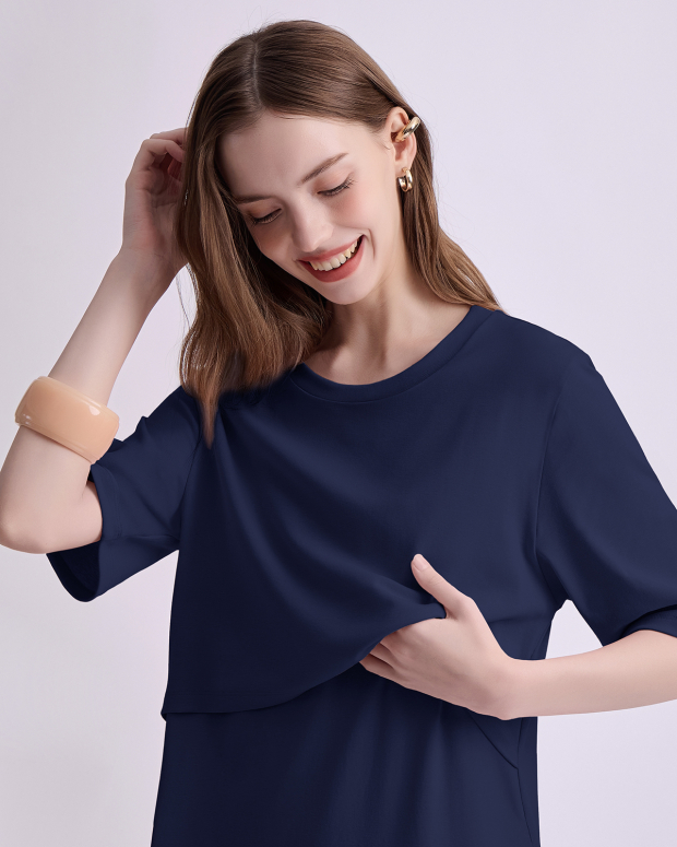A soft rayon-spandex maternity and nursing dress designed for maximum comfort. With its stretchable and cool-touch fabric, it offers a relaxed fit and discreet front nursing access — perfect for casual, everyday wear.