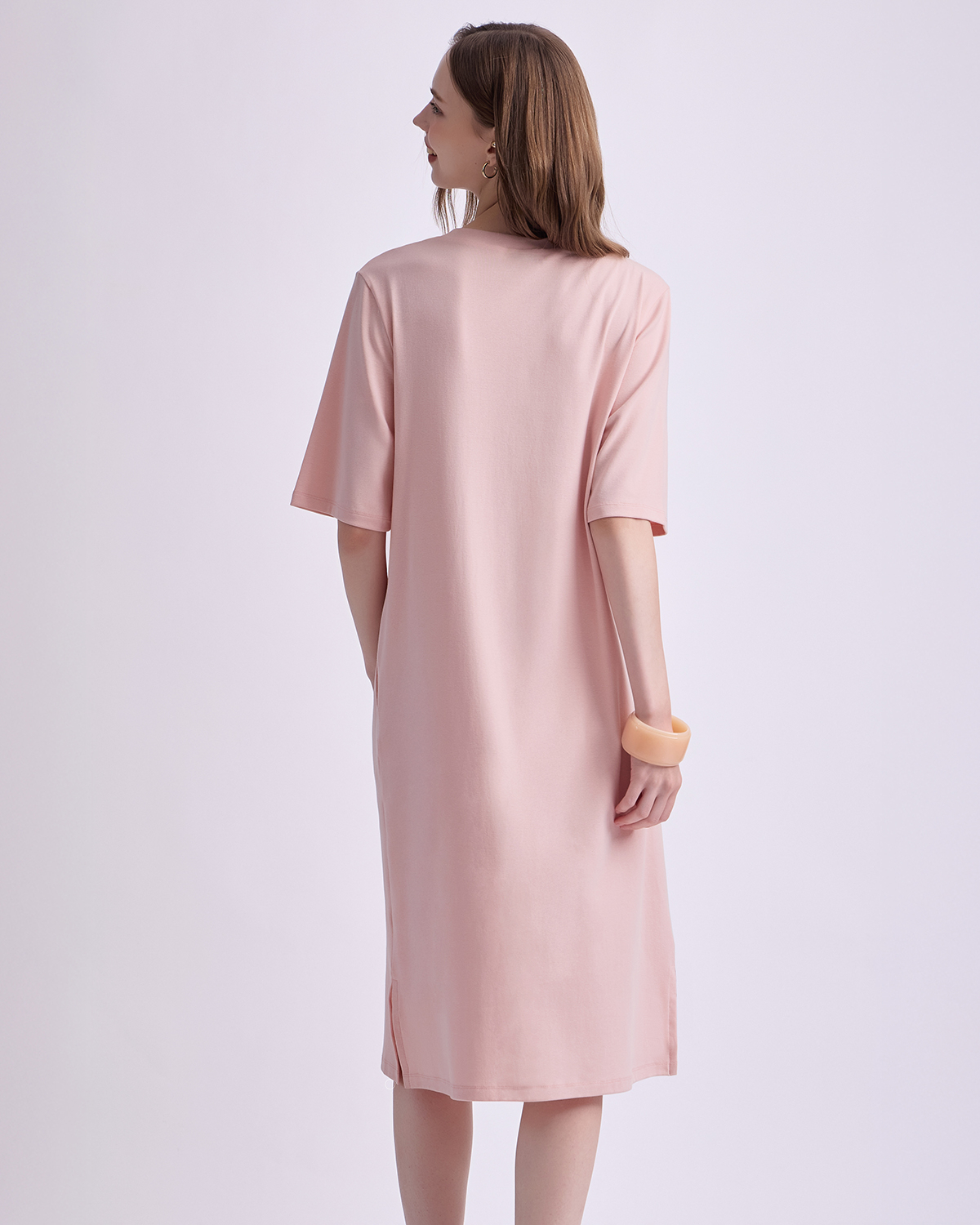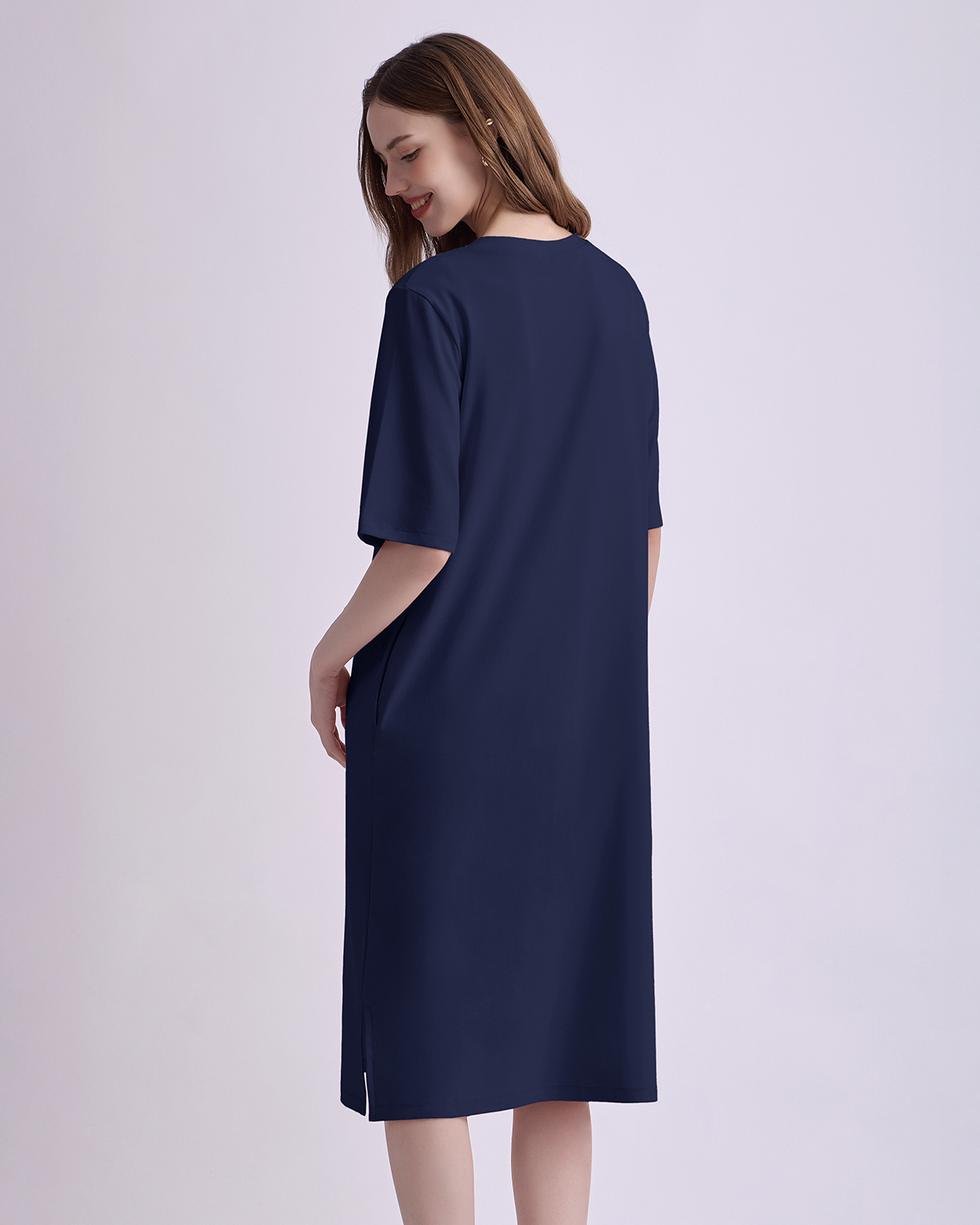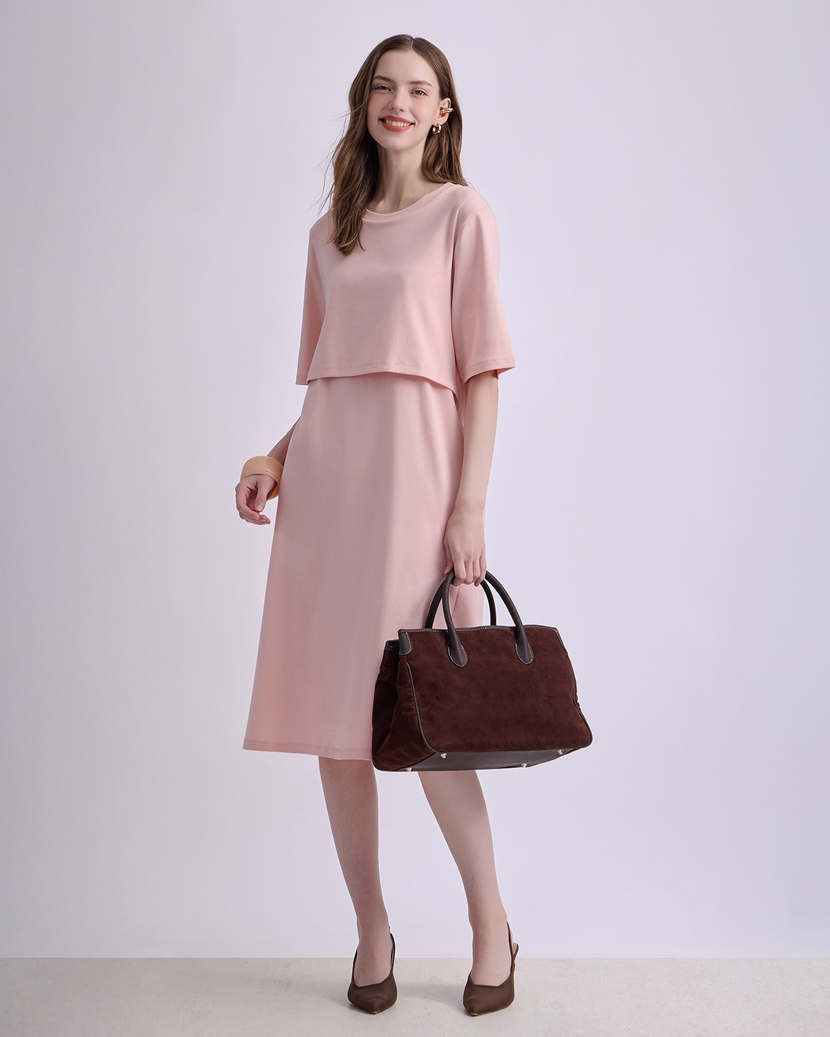 A soft rayon-spandex maternity and nursing dress designed for maximum comfort. With its stretchable and cool-touch fabric, it offers a relaxed fit and discreet front nursing access — perfect for casual, everyday wear.