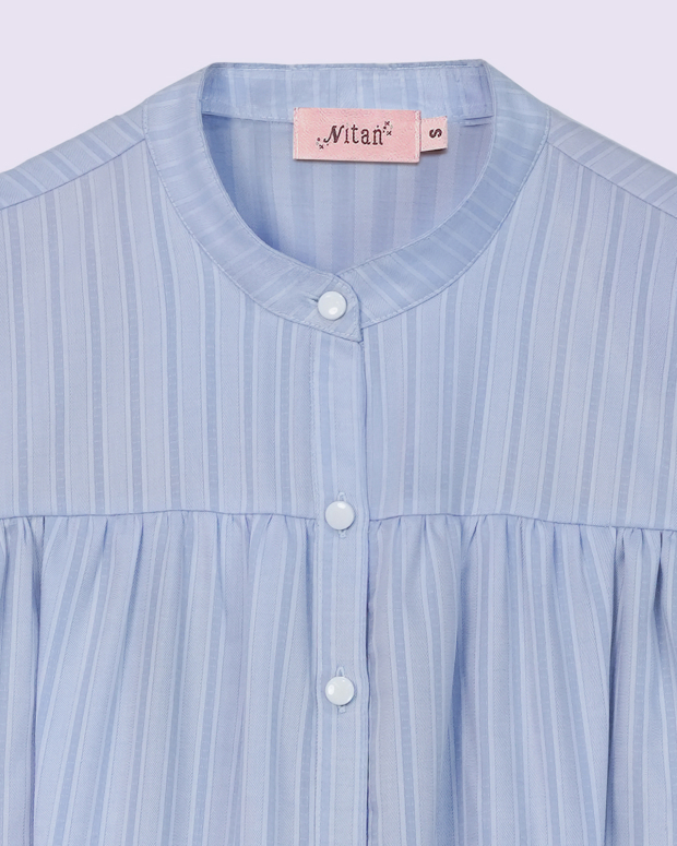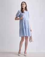 Look cool and trendy in maternity and nursing dress with Mandarin collar, comes in an oversized fit with puff-sleeves and gathered seams. Helps to conceal your figure during pregnancy or postpartum flawlessly. Made from quality cotton, feel comfortable to wear all day long even on warmer days. Whether you're heading to work or going out, you're sure it'll make you look pretty and get ready for nursing anywhere, anytime.