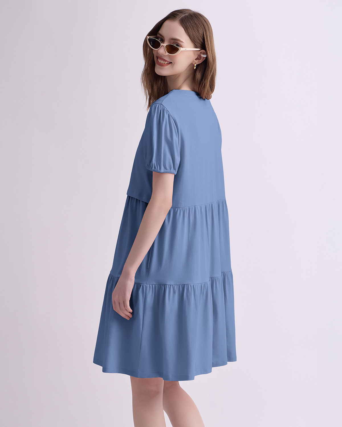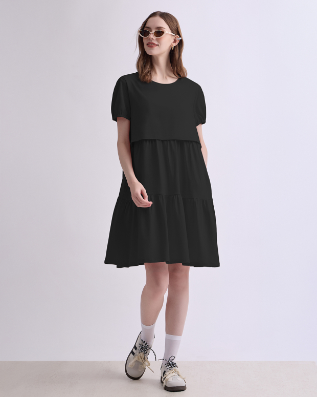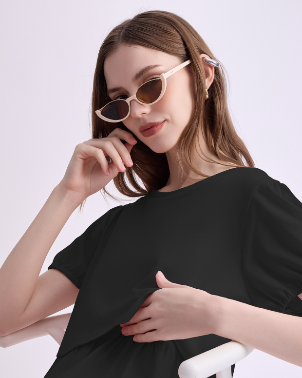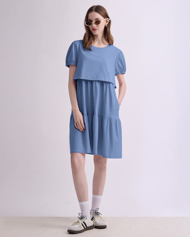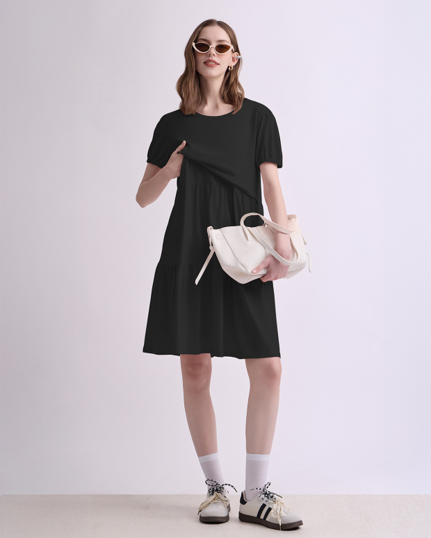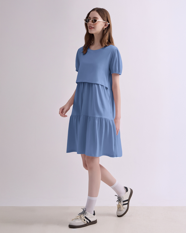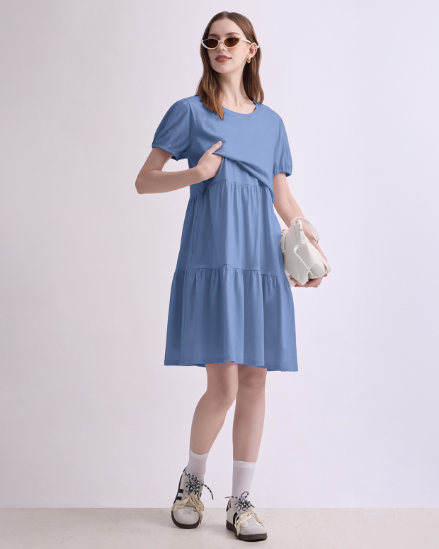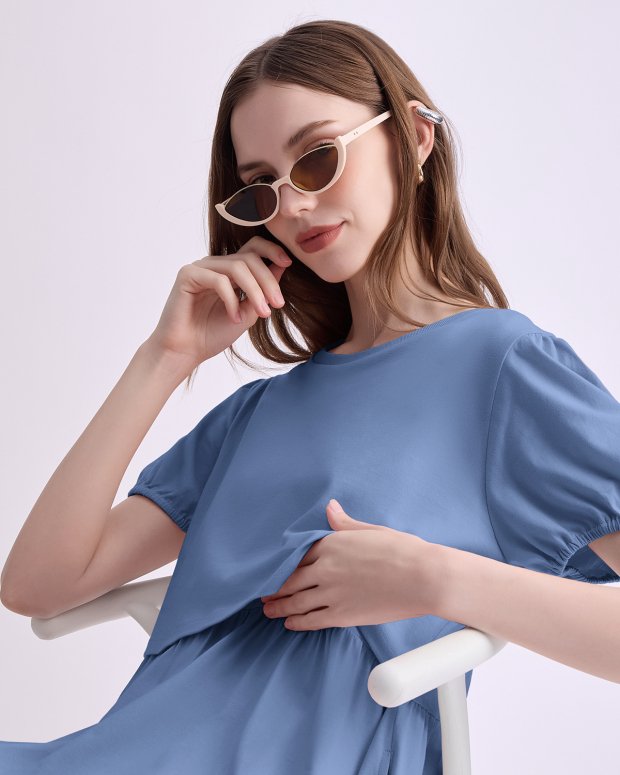 Feel younger with this super cute maternity and nursing dress with added details like elastic sleeves and multiple tiers to make you look younger. The variety colors are so super fresh to welcome the upcoming summer together with breathable fabric. Perfect for pumping and nursing at home and outside.