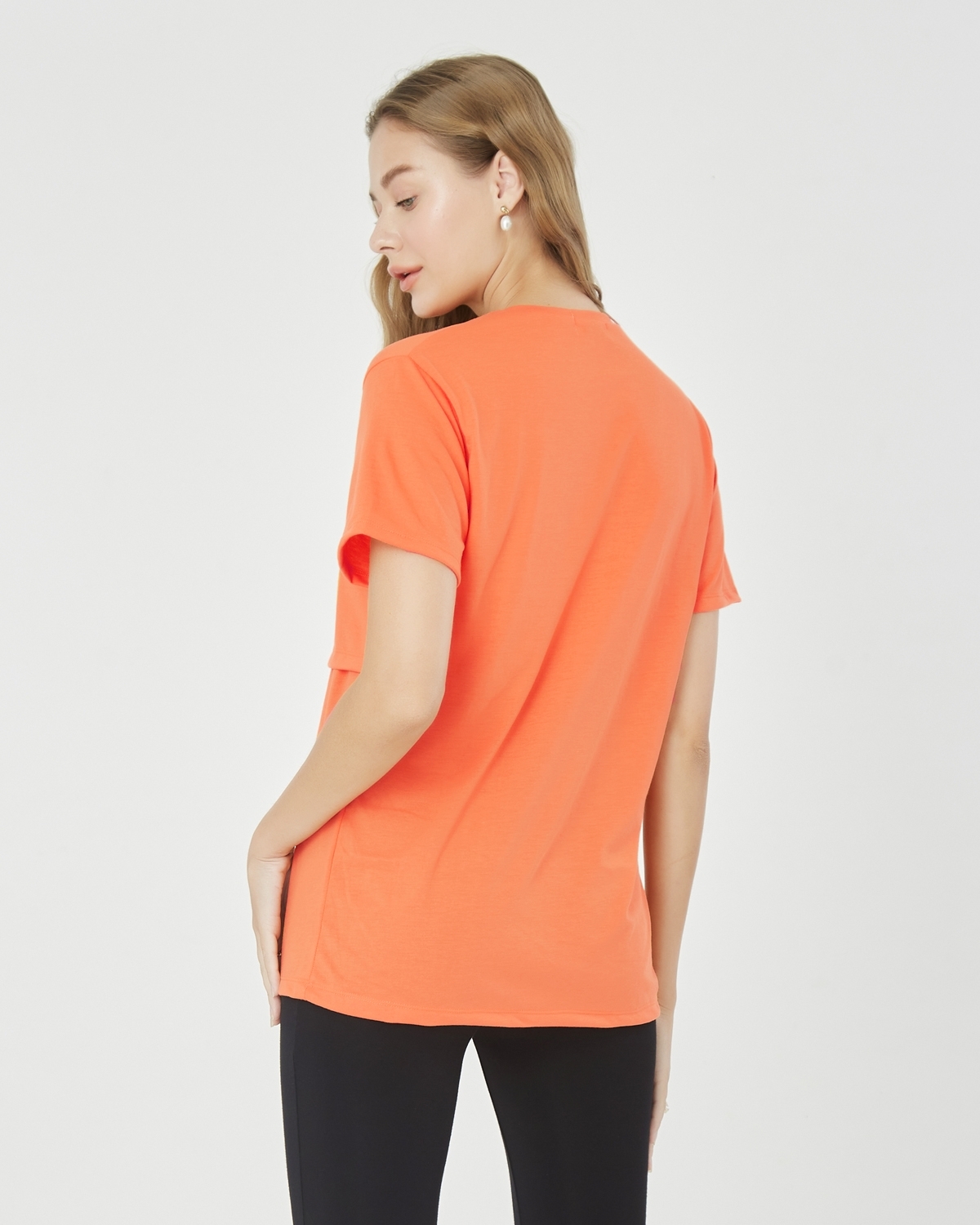 Basic top with a round neckline short sleeves is one of the essential clothing for your wardrobe. Made from soft and lightweight fabric, gives you a sensation of coolness in hot days. Fit for chillout with your little one and allow you to access breastfeeding and pumping at home and outside easier. Available in many colours, choose your favourite one!