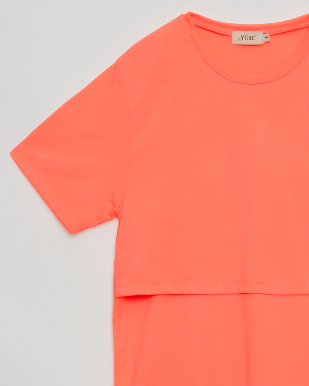 Basic top with a round neckline short sleeves is one of the essential clothing for your wardrobe. Made from soft and lightweight fabric, gives you a sensation of coolness in hot days. Fit for chillout with your little one and allow you to access breastfeeding and pumping at home and outside easier. Available in many colours, choose your favourite one!