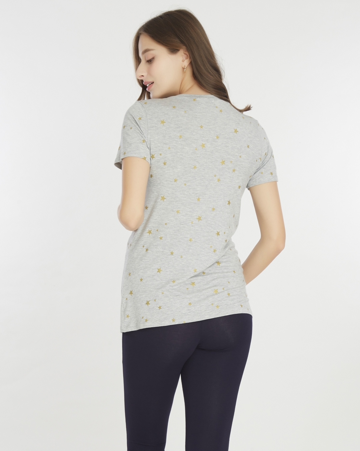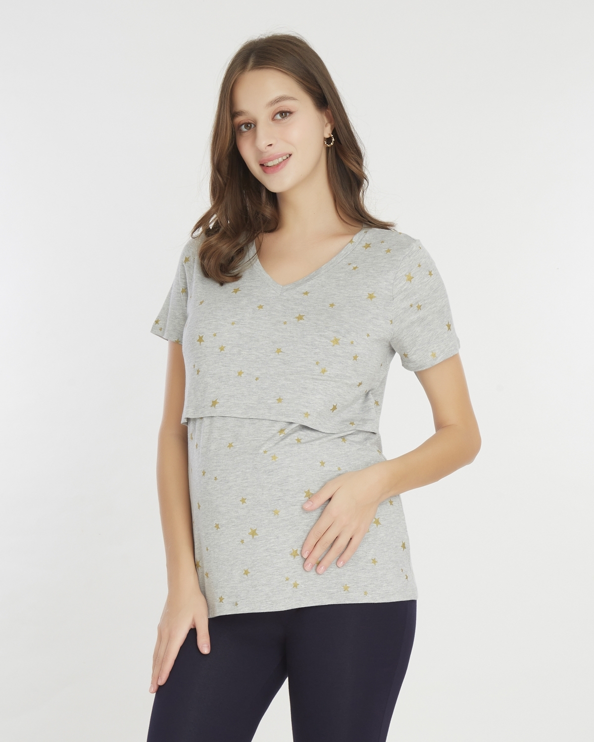 Basic V-neck nursing top with short sleeves Tie dye pattern Beautiful and chic to wear on a casual day. Soft fabric can Soft fabric can be stretchy well. fabric, feel comfortable to wear on warmer weather on casual days. You're sure to access nursing at home and outside easier anytime. Available on multi-colours, choose from your favourite colours or basic shades for easy matching.