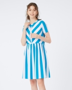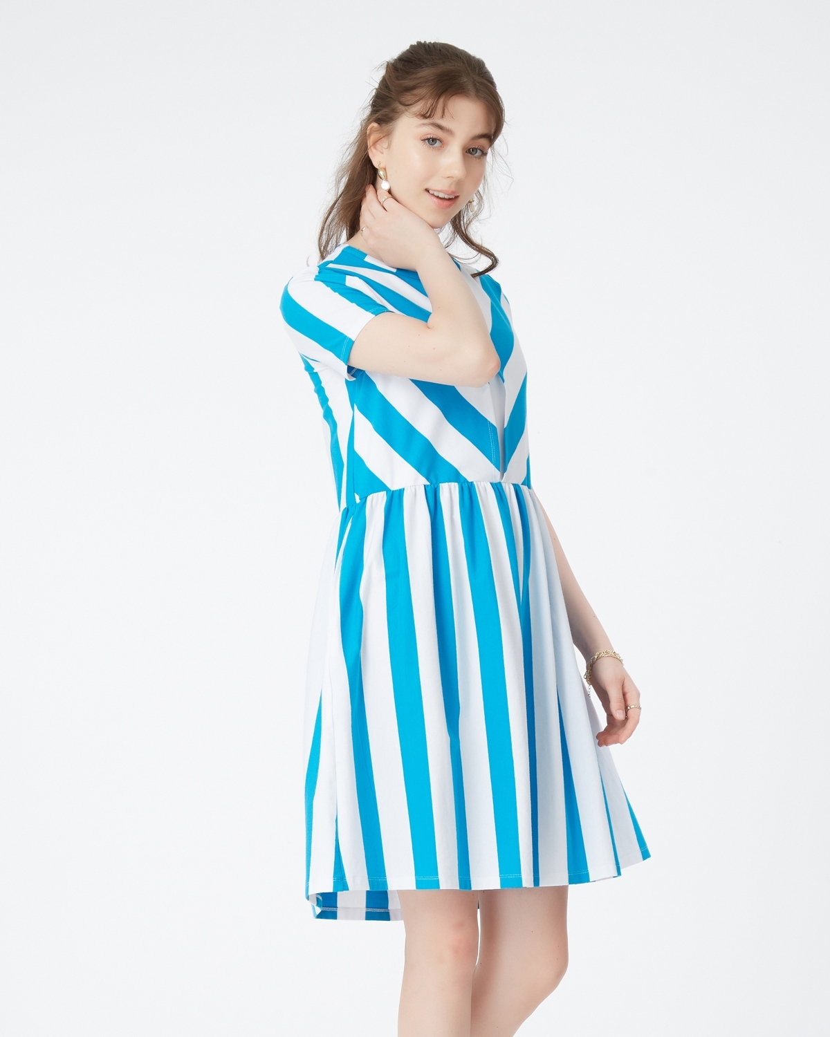 ชุดเดรสให้นมบุตรแขนสั้น ลายริ้ว อำพรางหุ่น ทำให้คุณแม่ดูเพรียวขึ้นทันตา เนื้อผ้ายืด+สแปนเดกซ์ ทำให้มีความยืดหยุดได้ดีมาก อีกทั้งยังสวมใส่สบาย ไม่ร้อน ผ้าไม่หนาเกินไป ช่องให้นมบุตรเปิดได้กว้างพอดิบพอดี ไม่โป๊ และยังเข้าเต้าลูกแฝดหรือปั๊มนมทั้ง 2 ข้างได้พร้อมกันอย่างสะดวกสบาย