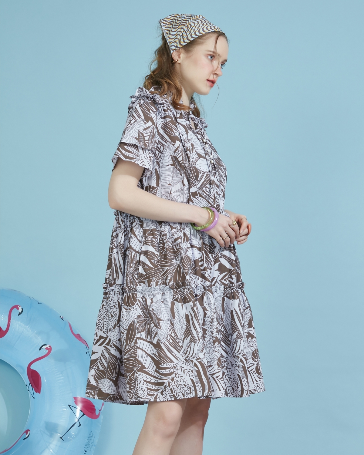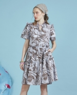 ชุดคลุมท้องและเดรสให้นมบุตร ลายกราฟฟิกรูปใบไม้ เพิ่มความหวานด้วยแขนระบายสองชั้น แต่งคอระบาย พร้อมโบว์ผูกเล็กๆเพิ่มดีเทลให้กับชุด กระโปรงพริ้ว ให้คุณแม่เคลื่อนไหวได้สะดวก ให้นมบุตรได้อย่างสะดวกสบาย ให้คุณแม่พร้อมเสมอสำหรับการให้นมบุตรปั๊มนมทั้งในบ้านและนอกบ้าน