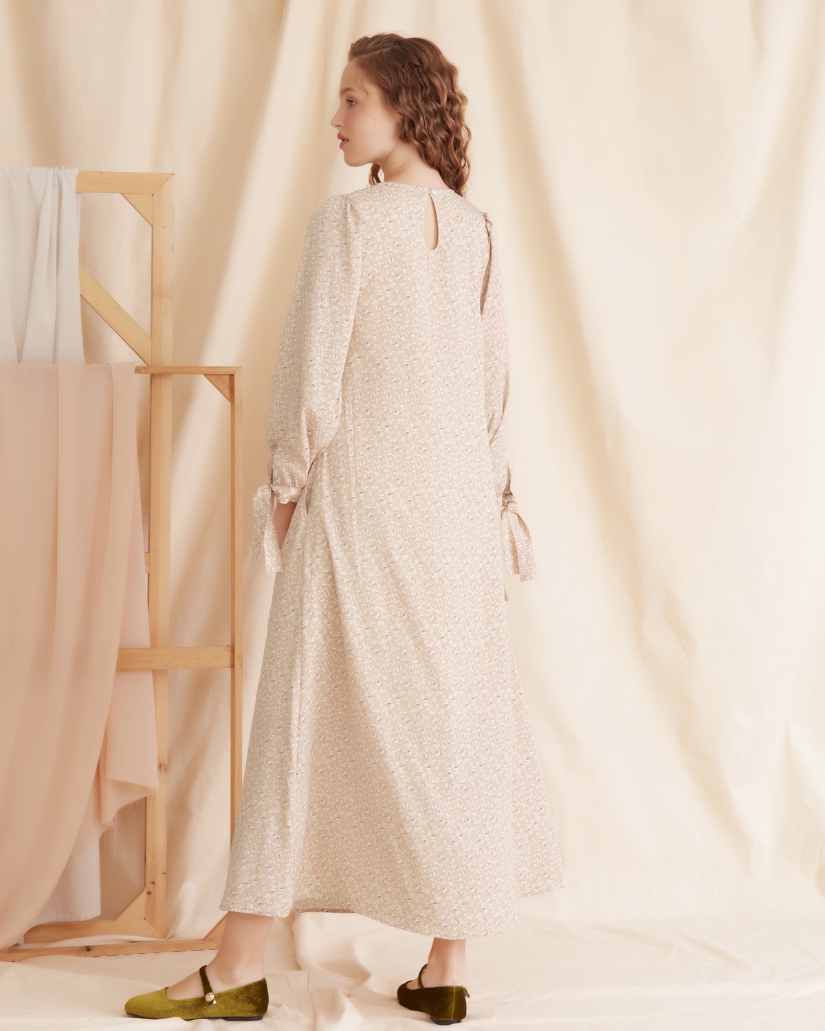 ชุดคลุมท้องและเดรสให้นมบุตร เป็นแม็กซี่เดรสแขนยาว ทรงเอ ชายกระโปรงมีความพลิ้วไหว ทำให้คุณแม่ดูสวยเรียบหรู เพิ่มดีเทลความอ่อนหวานด้วยโบว์ที่ปลายแขน ให้นมหรือปั๊มนมสะดวกสบาย เพื่อให้คุณแม่พร้อมเสมอสำหรับการให้นมบุตรในทุกสถานที่