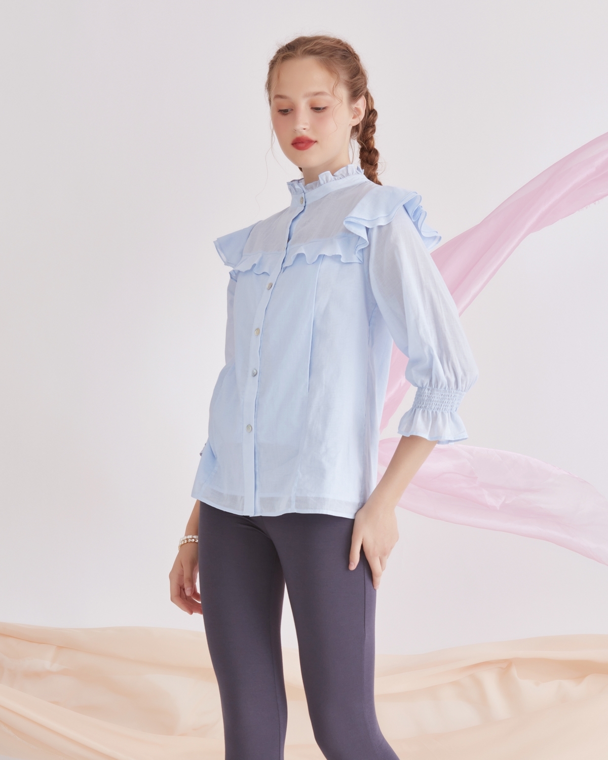 "เสื้อให้นมบุตรสไตล์คอจีน แขนยาว จั๊มปลายแขนกระดิ่ง เพิ่มความคิ้วท์ด้วยระบายรอบอกและช่วงแขน ผ้าคอตตอนเกรดพรีเมียมนำเข้าจากเกาหลี เนื้อนุ่ม ใส่สบาย ระบายอากาศได้ดี แมทช์ได้กับทุกลุค พร้อมฟังก์ชั่นให้นมบุตรที่สะดวกสบาย หมดกังวลเรื่องการให้นมลูกน้อยทั้งในบ้านและนอกบ้าน