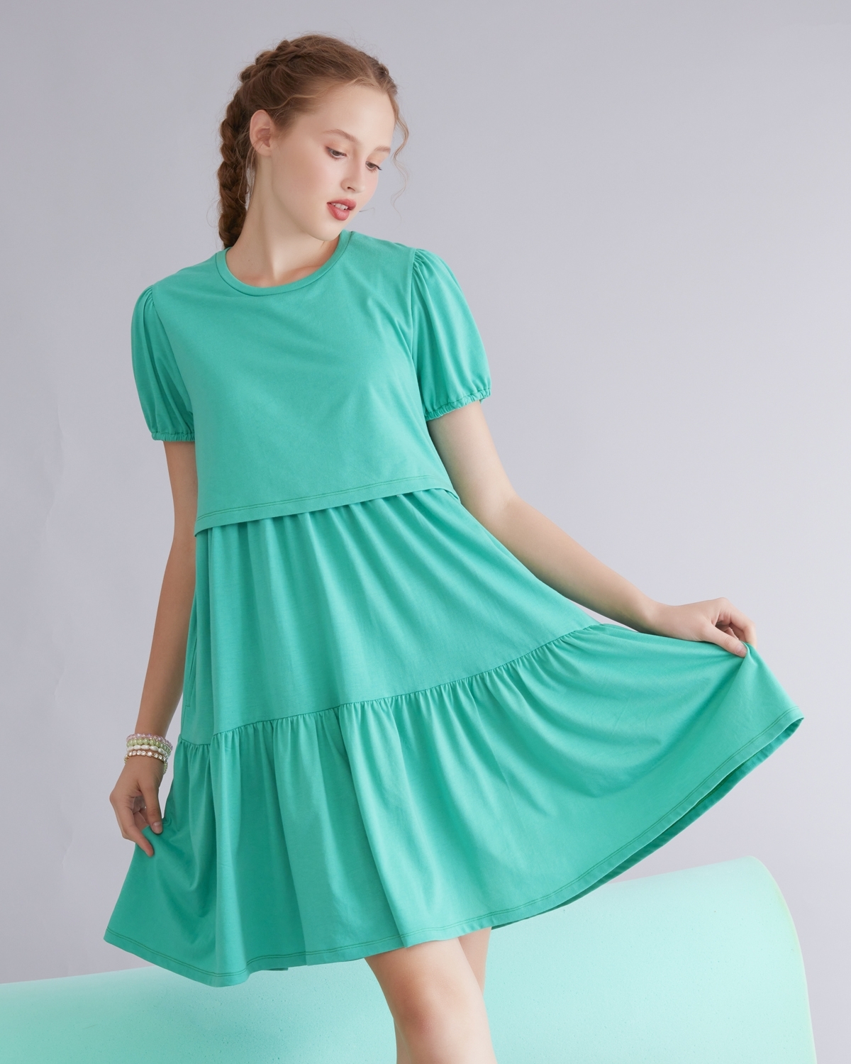 ชุดเดรสให้นมบุตร แขนสั้น ปลายแขนใส่ยางยืด จั๊มแขนนิดๆ ให้ลุคคุณแม่ดูเด็กลง มาพร้อมกระโปรงระบายชั้น เพิ่มดีเทลให้กับชุด รุ่นนี้สีสันสดใส ต้อนรับซัมเมอร์ที่กำลังมา สวมใส่ง่าย เนื้อผ้าระบายอากาศได้ดี ให้นมและป๊มนมลูกน้อยได้ทั้งในบ้านและนอกบ้าน