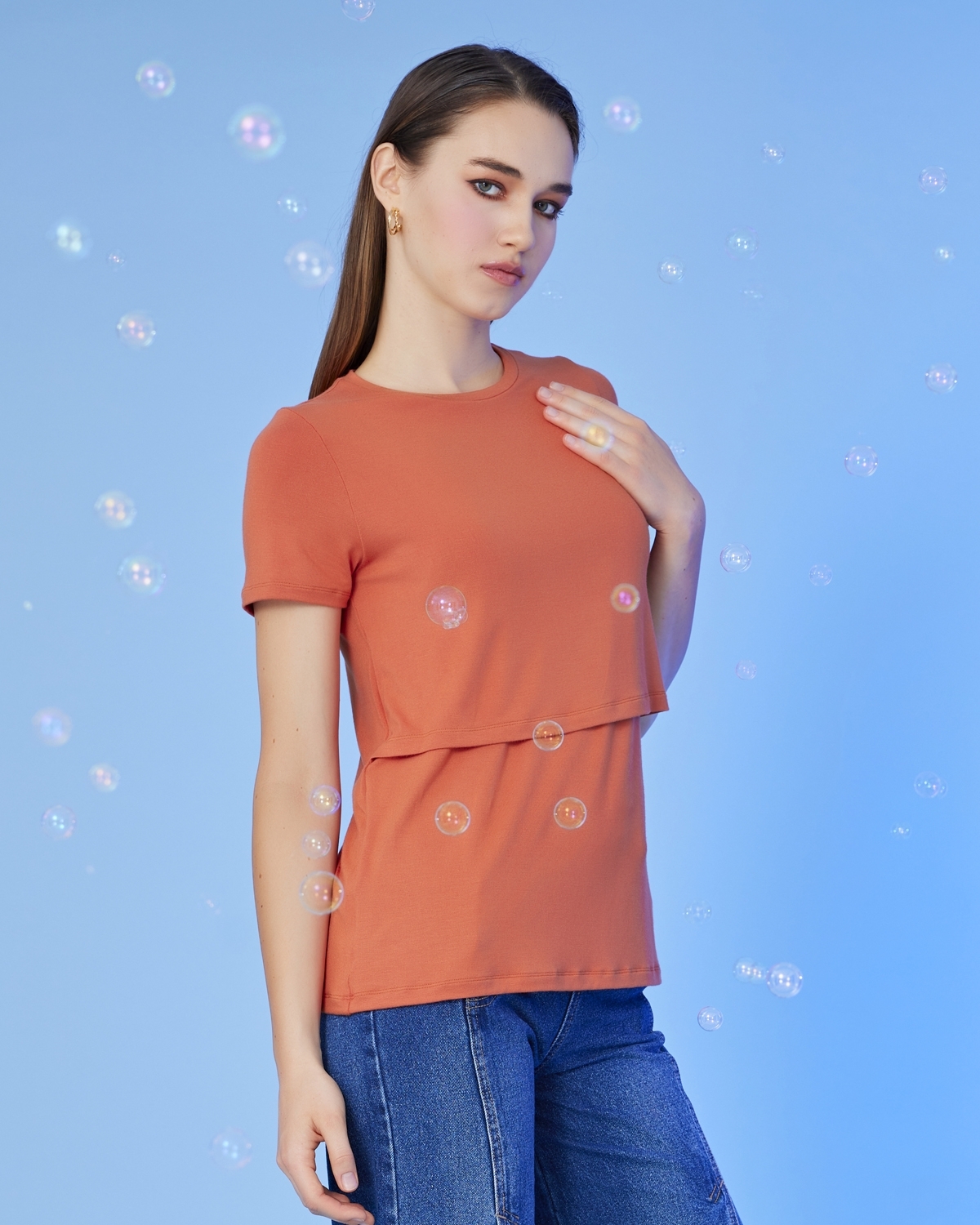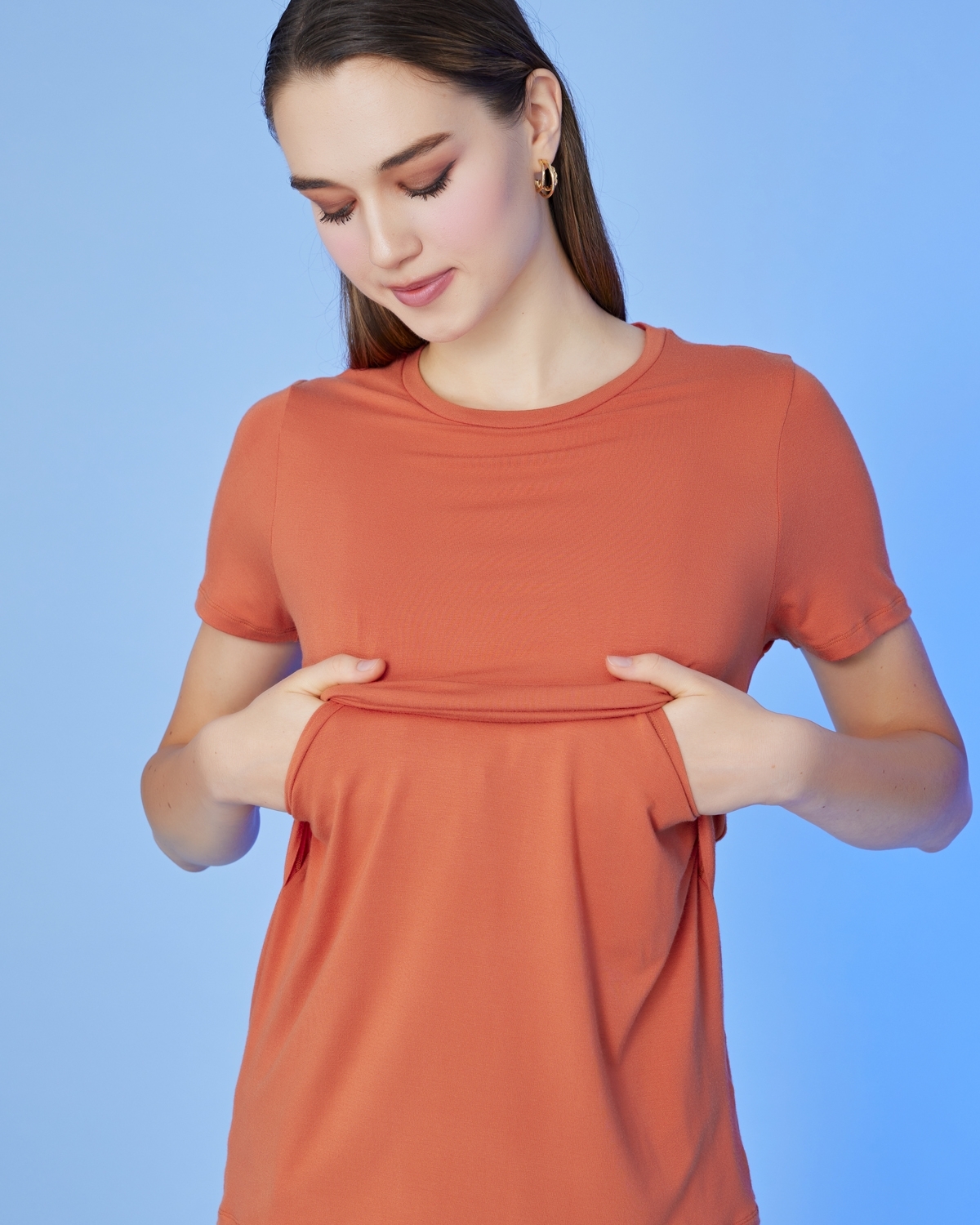 เสื้อให้นมบุตรแขนสั้น เนื้อผ้านุ่มสวมใส่สบาย ไม่ร้อน ให้นมบุตรสะดวก ให้คุณแม่พร้อมเสมอสำหรับการให้นมบุตรทั้งในบ้านและนอกบ้าน