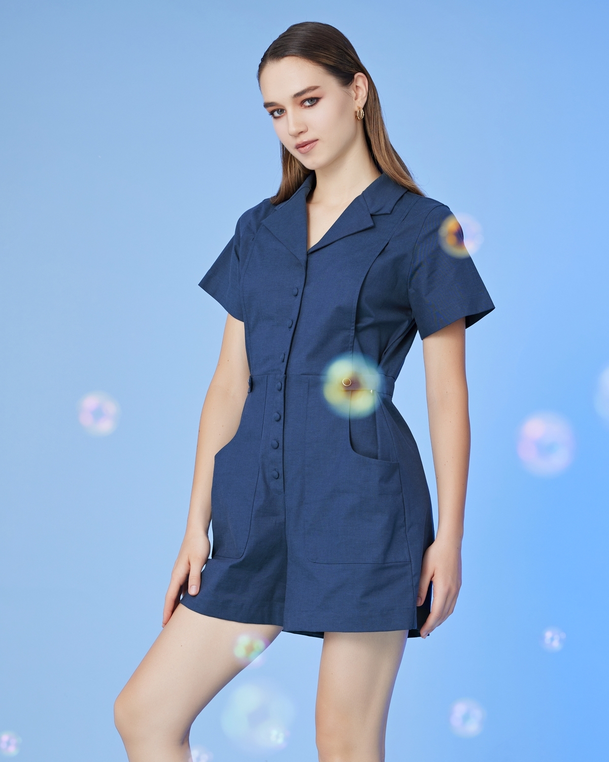 จั๊มสูทให้นมบุตร ขาสั้น ทรงเชิ๊ต เอวสามารถปรับระดับได้ ช่องให้นมด้านหน้าเนียนเรียบไปกับชุด ดูไม่ออกว่าเป็นชุดให้นมบุตร สามารถให้นมลูกน้อยได้อย่างสะดวกสบาย ไม่ต้องกลัวโป๊ ให้คุณแม่พร้อมเสมอกับการให้นมบุตรทั้งในบ้านและนอกบ้าน