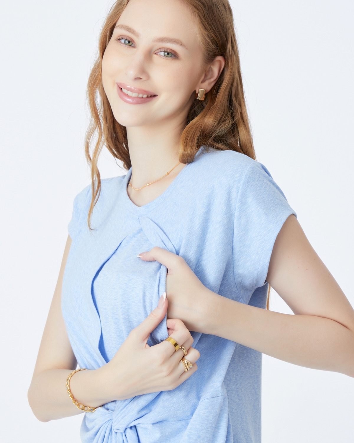 เดรสให้นมบุตรแฟชั่น คอกลม แต่งดีเทลสวยๆ ด้วยทวิส (Twist) ด้านหน้า ผลิตจากเนื้อผ้ายืดผสมสแปนเด็กซ์ เพื่อมอบความนุ่มสบายทุกสัมผัส เนื้อผ้าทอละเอียดช่วยระบายอากาศได้ดีทำให้ไม่ร้อน ช่วยให้ลุคการแต่งกายดูทันสมัย สามารถสวมใส่ได้ทั้งในคุณแม่ที่กำลังตั้งครรภ์และคุณแม่ที่ต้องให้นมบุตร มาพร้อมประโยชน์ในการใช้งานอย่างการให้นมบุตรได้ดีมาก ช่วยให้คุณแม่ดูไม่โป๊แม้จำเป็นต้องให้นมในที่สาธารณะ อีกทั้งดีไซน์แบบทวิสนี้ยังช่วยอำพรางหุ่นคุณแม่ที่ยังไม่เข้าที่ได้ดีอีกด้วย มีให้เลือกทั้งหมด 12 สี