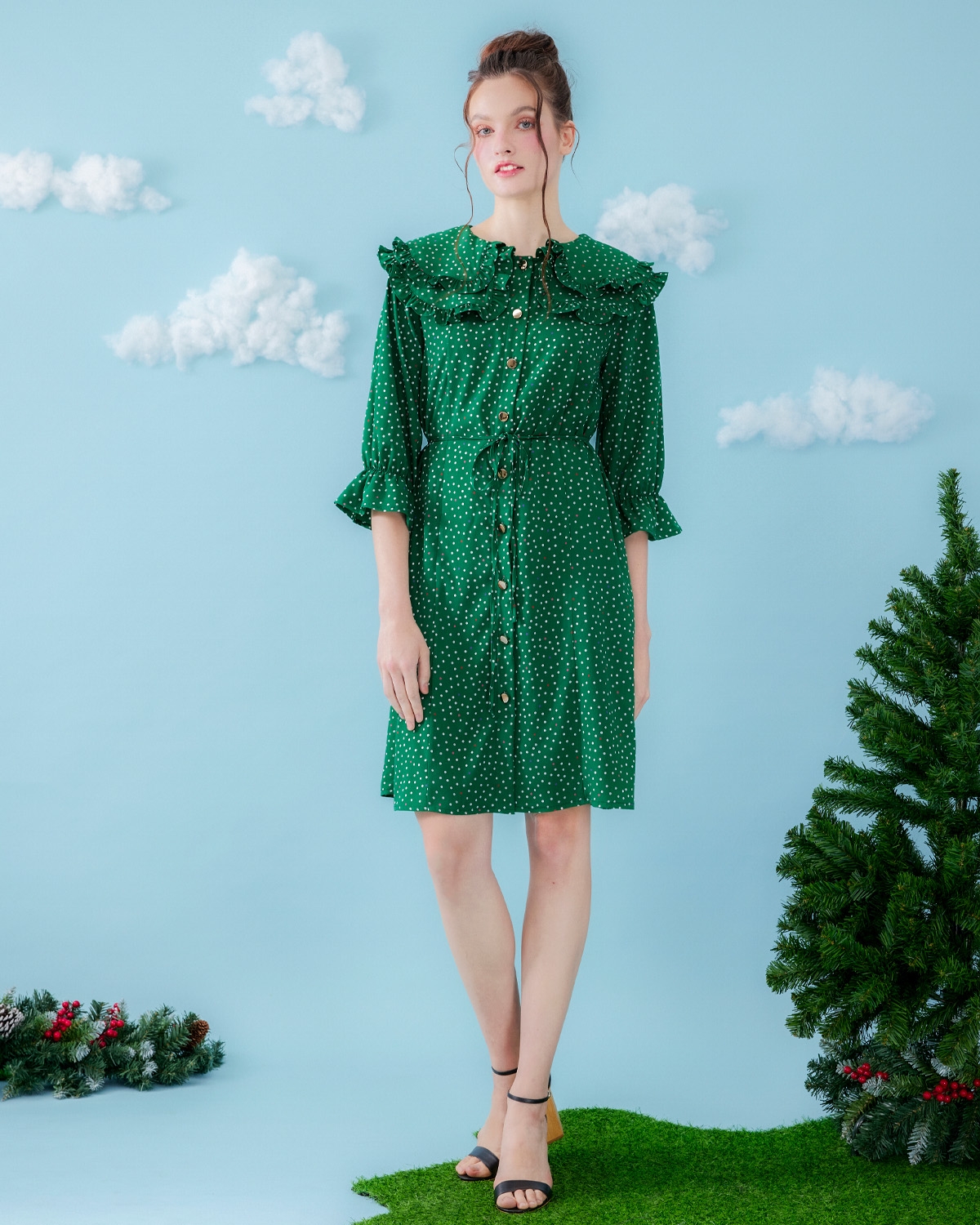 ชุดคลุมท้องและเดรสให้นมบุตร แขนห้าส่วน มีระบายที่ปลายแขน แต่งปกระบายสองชั้น กระดุมผ่าหน้าตลอดแนว พร้อมสายผูกเอวเส้นเล็ก ให้คุณแม่เลือกสวมใส่ได้หลายรูปแบบ สามารถใส่ออกไปทำงานหรือกิจกรรมอื่นๆนอกบ้านได้อย่างมั่นใจ พร้อมให้นมได้ในทุกสถานการณ์