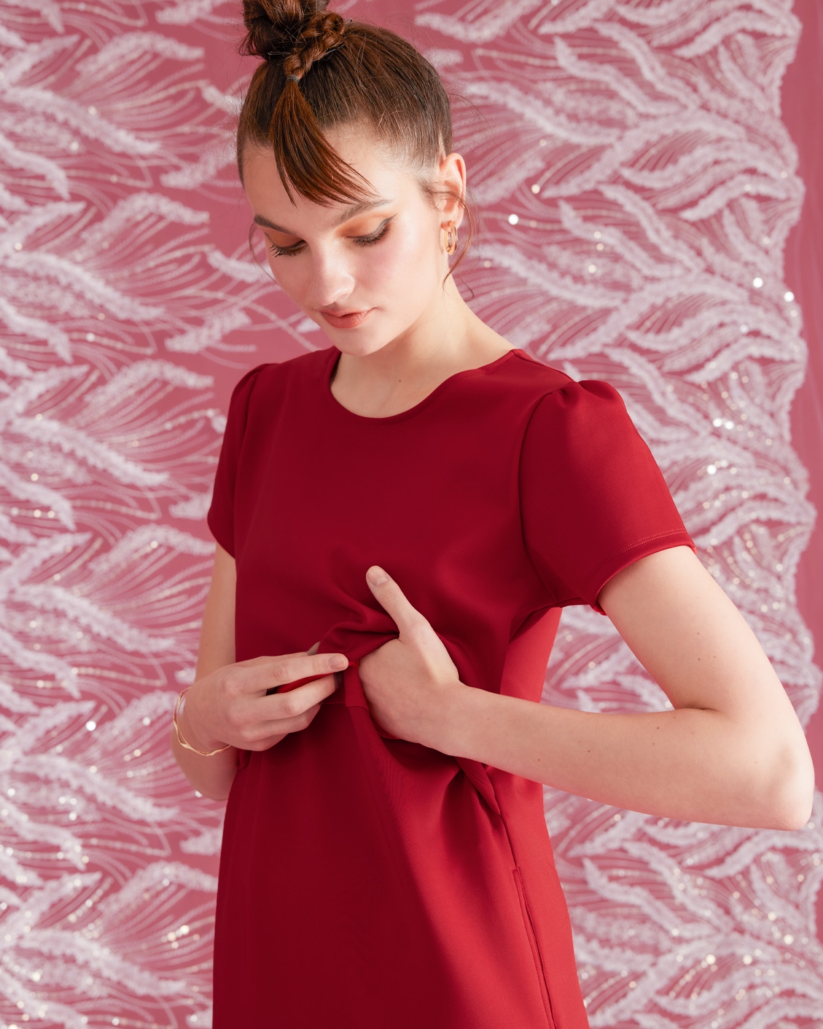 ชุดคลุมท้องและเดรสให้นมบุตรแขนสั้น แต่งดีเทลระบายที่ชายกระโปรง เนื้อผ้านุ่ม สวมใส่สบาย ให้นมหรือปั๊มนมสะดวก เพื่อให้คุณแม่พร้อมเสมอสำหรับการให้นมบุตรในทุกสถานที่