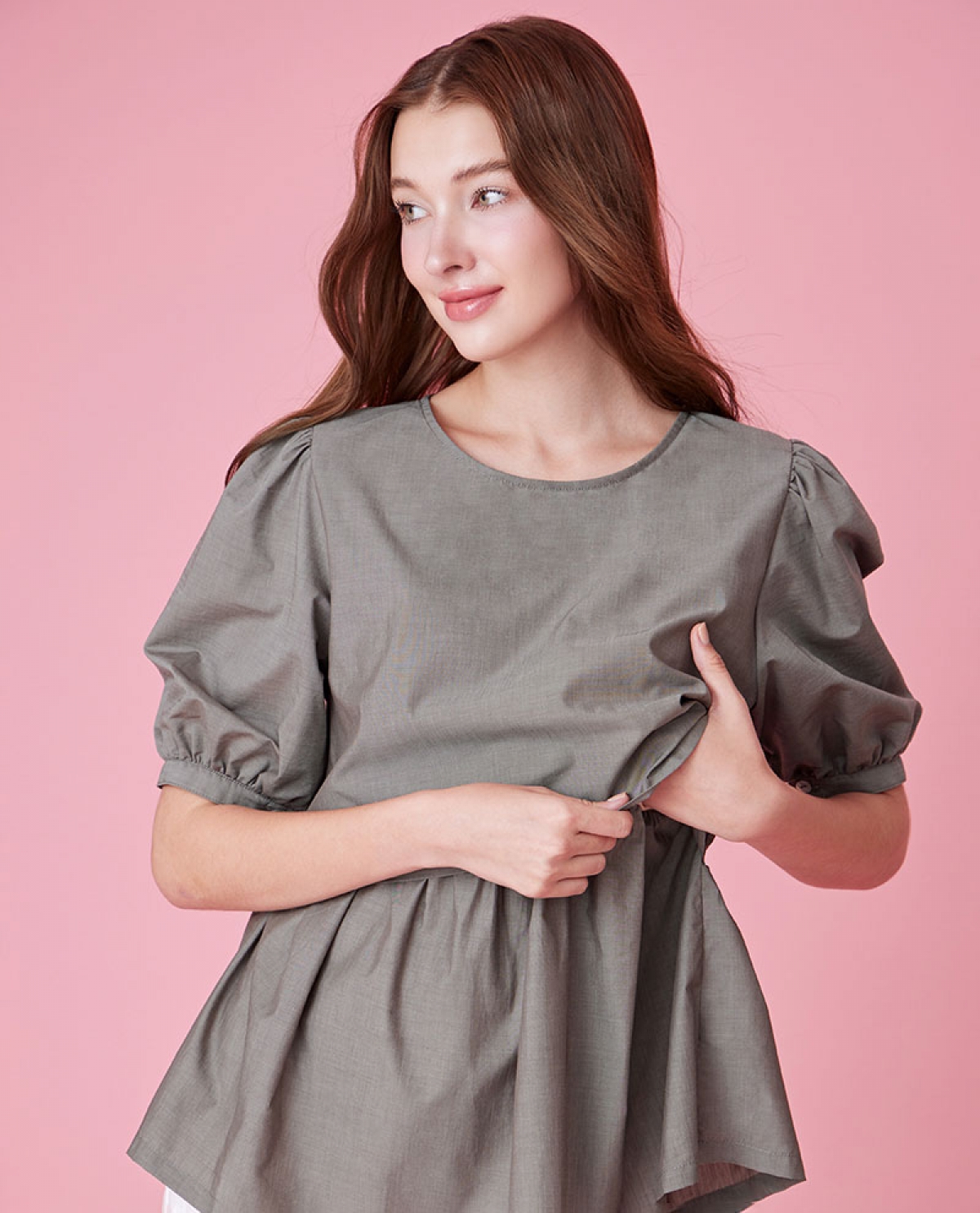 เสื้อให้นมบุตรแขนตุ๊กตาสุดน่ารัก เนื้อผ้า Cotton 100% สวมใส่สบายไม่ร้อน ชายเสื้อบานพลิ้วสามารถช่วยอำพรางรูปร่างของคุณแม่หลังคลอดและคุณแม่ตั้งครรภ์ให้ดูสวยและช่วยเสริมความมั่นใจมากยิ่งขึ้น ไม่ว่าจะใส่คู่กับกางเกงยีนส์ เลคกิ้ง หรือกางเกงขาสั้นก็ดูเข้ากันสุดๆ เหมาะสำหรับใส่ไปเที่ยวหรือจะใส่อยู่บ้านในวันสบายๆกับลูกน้อยและครอบครัว