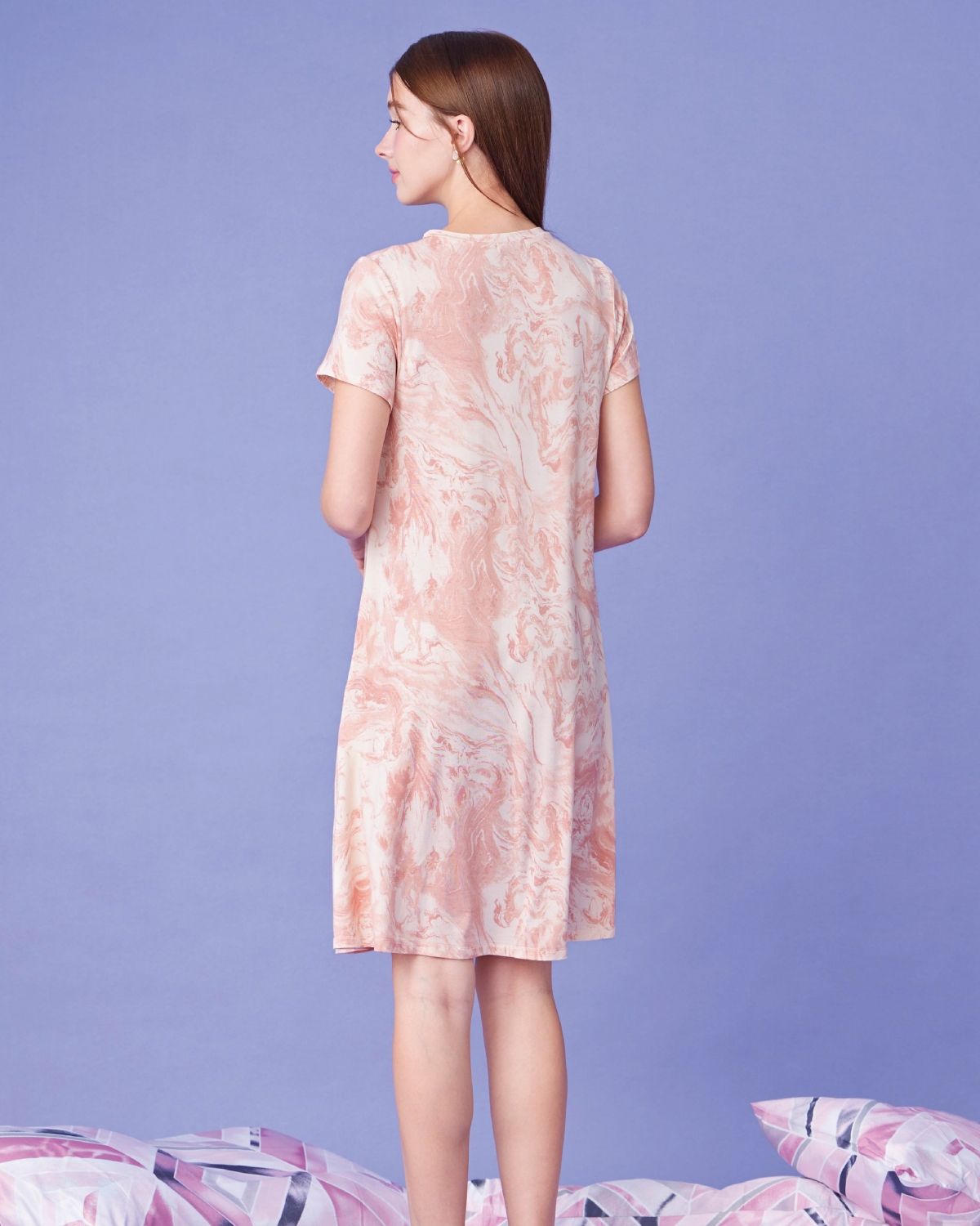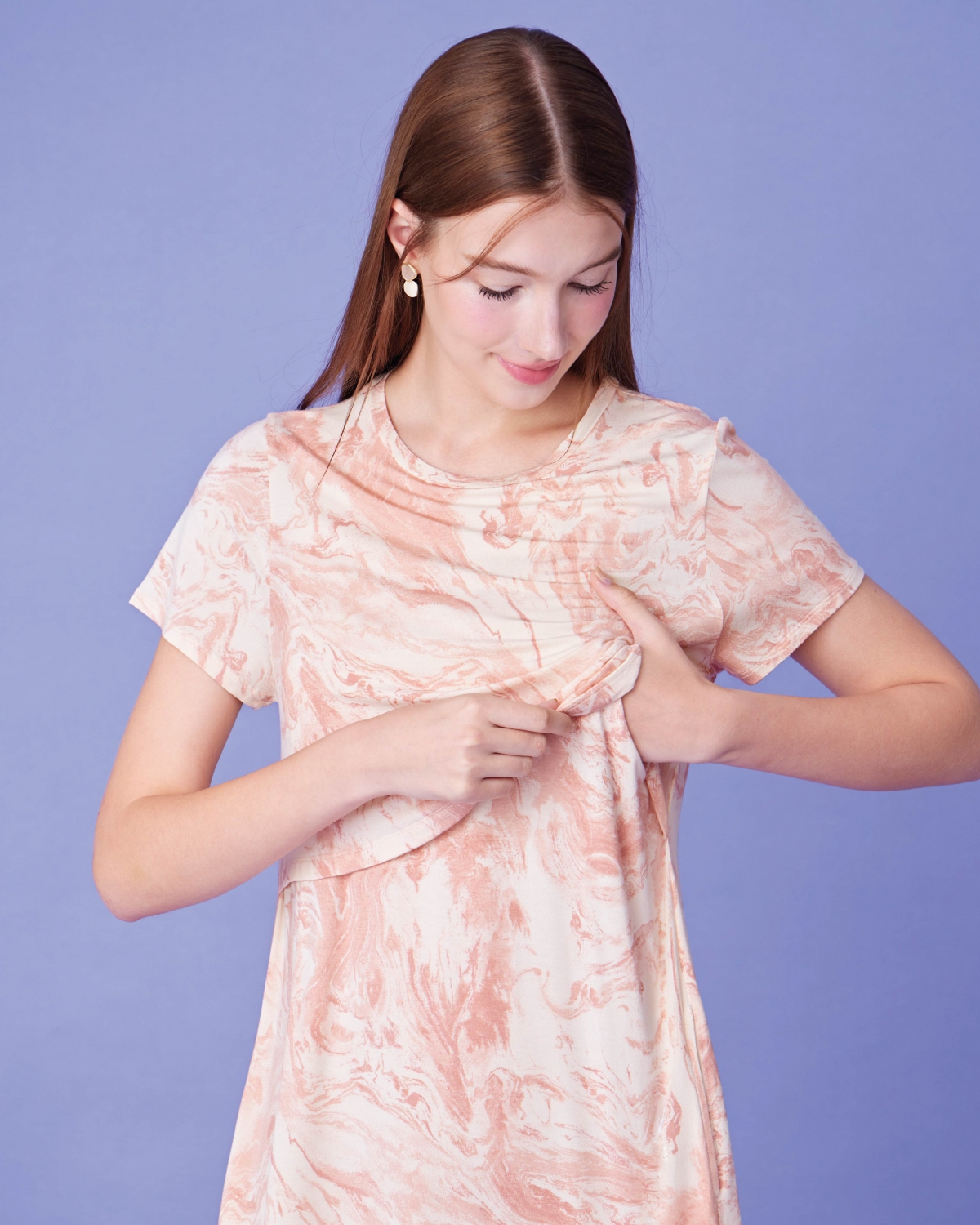 ชุดคลุมท้อง เดรสให้นมบุตรแขนสั้น ลายหินอ่อน ทรงเอ เนื้อผ้านุ่มสวมใส่สบาย ไม่ร้อน ให้นมบุตรสะดวก ให้คุณแม่พร้อมเสมอสำหรับการให้นมบุตรทั้งในบ้านและนอกบ้าน