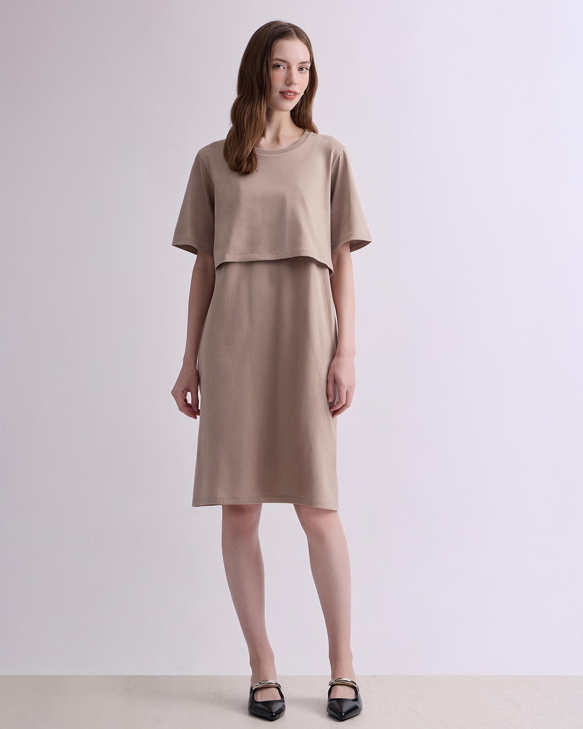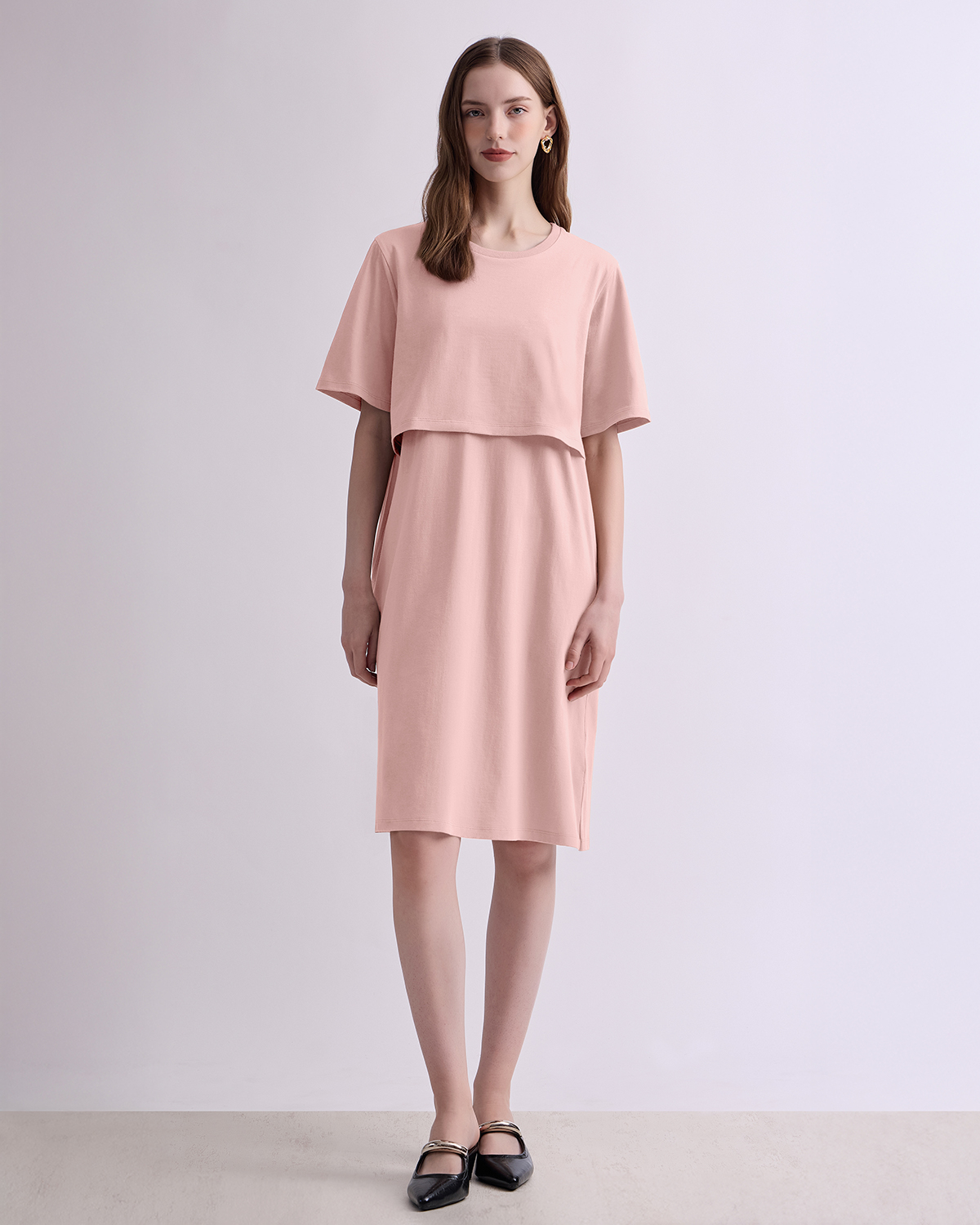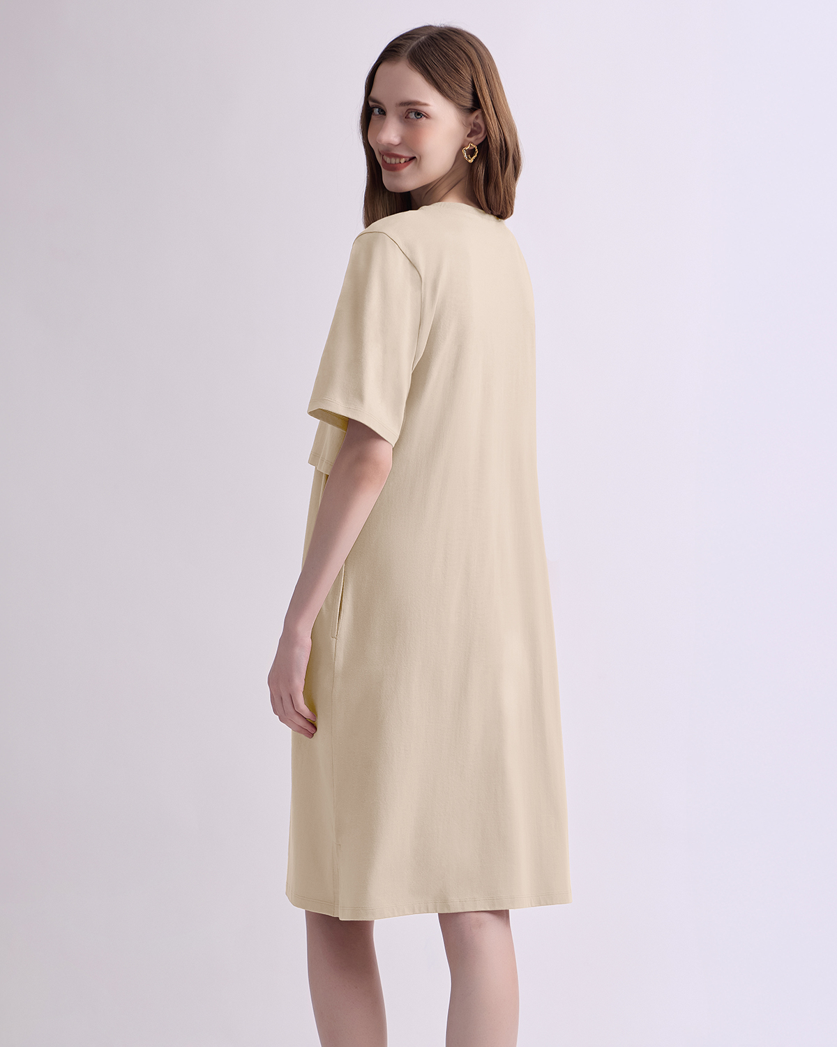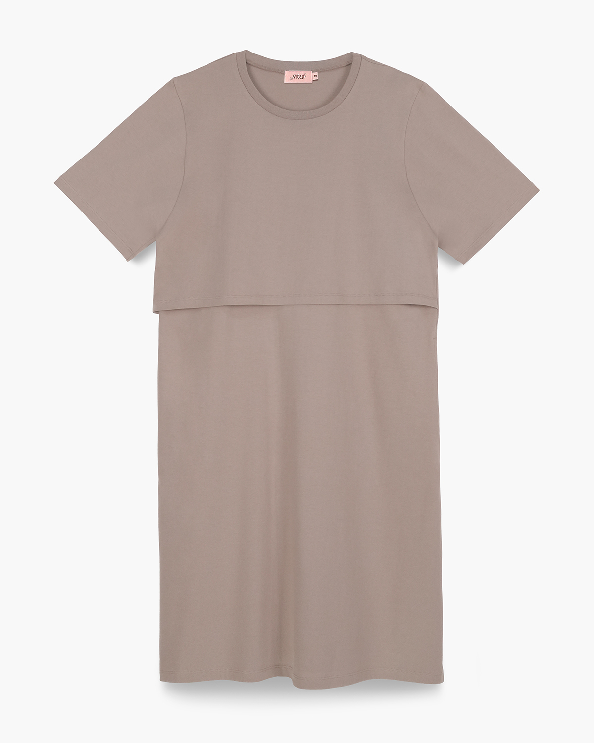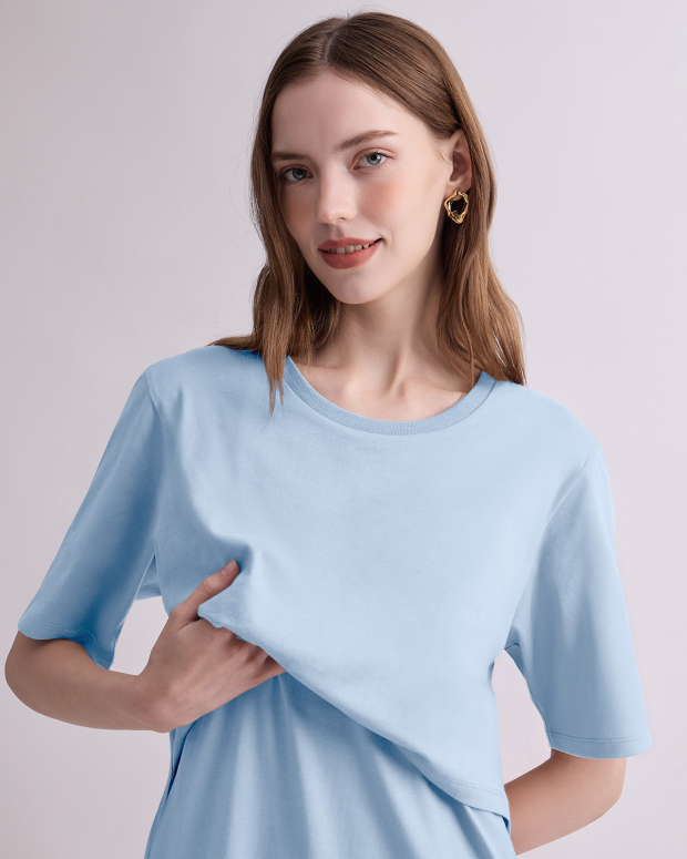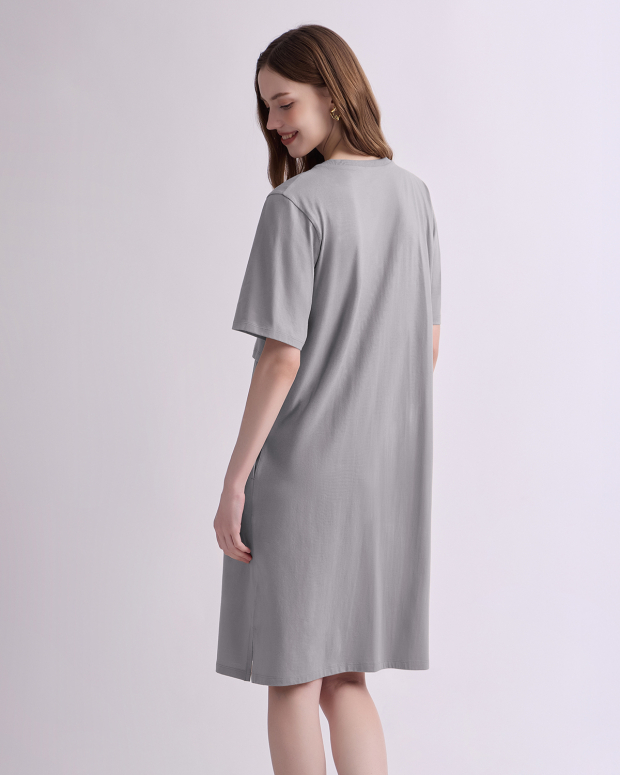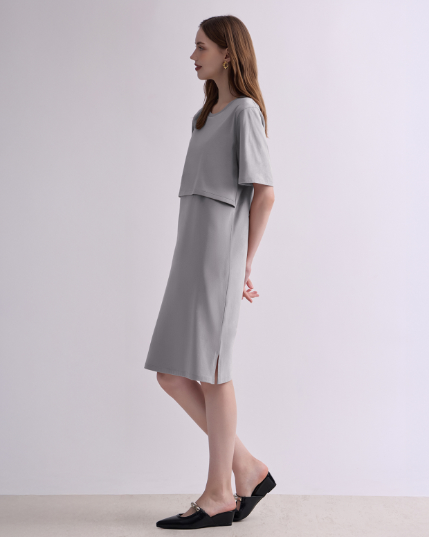 เดรสคลุมท้องและให้นมบุตรแขนสั้น เบสิกที่คุณแม่ทุกคนควรมี ทรงตรง ใช้งานง่าย ใส่ได้ในทุกวัน เนื้อผ้านุ่มสวมใส่สบาย ไม่ร้อน ด้วยผ้ายืดคอตตอน 100% ให้นมบุตรสะดวก ให้คุณแม่พร้อมเสมอสำหรับการให้นมบุตรทั้งในบ้านและนอกบ้าน