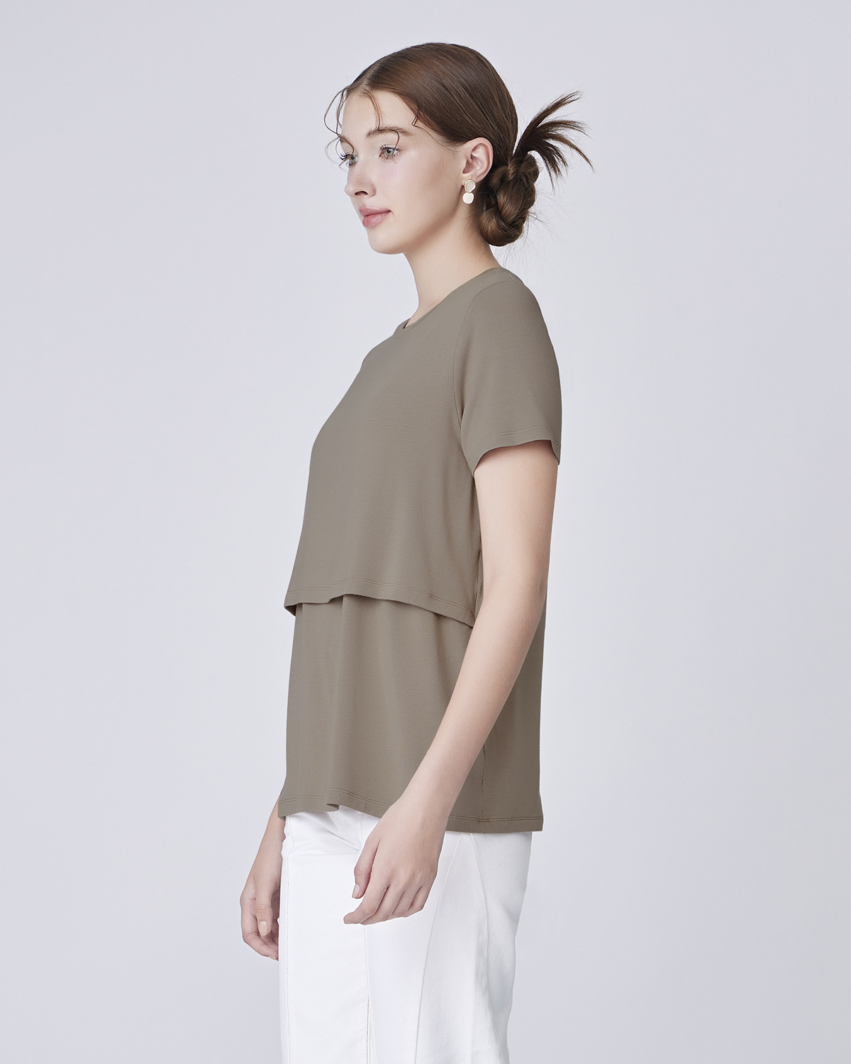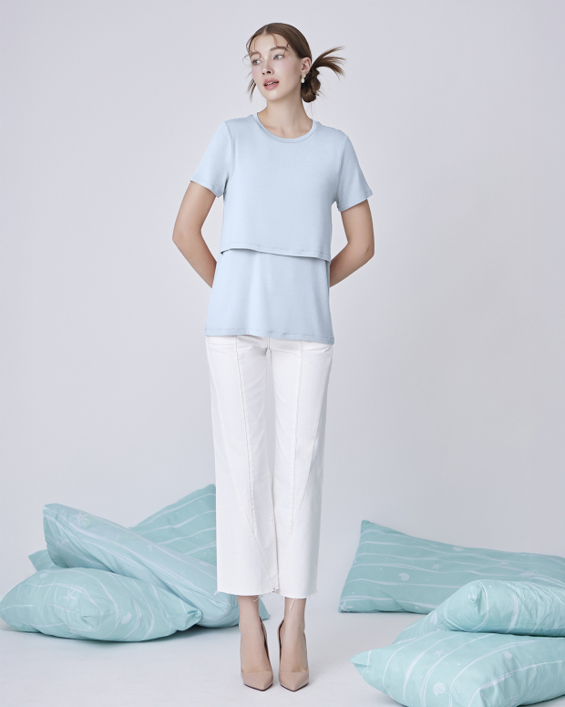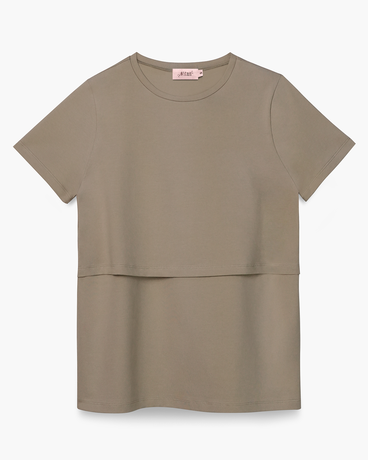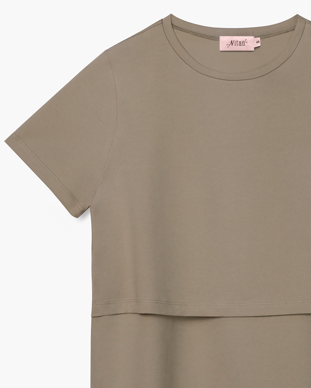 เสื้อให้นมบุตรและคลุมท้อง แขนสั้น เนื้อผ้าเนียนนุ่ม สวมใส่สบาย ไม่ร้อน ให้นมบุตรสะดวก ให้คุณแม่พร้อมเสมอสำหรับการให้นมบุตรทั้งในบ้านและนอกบ้าน