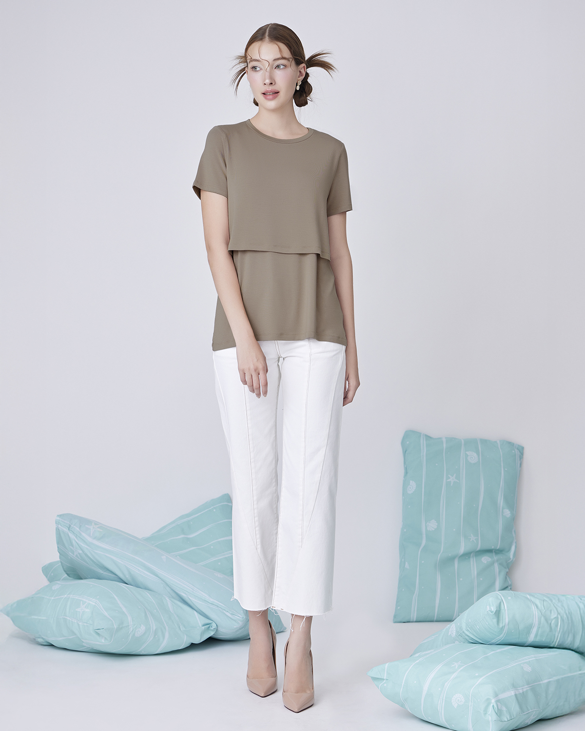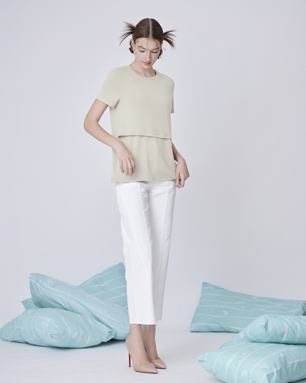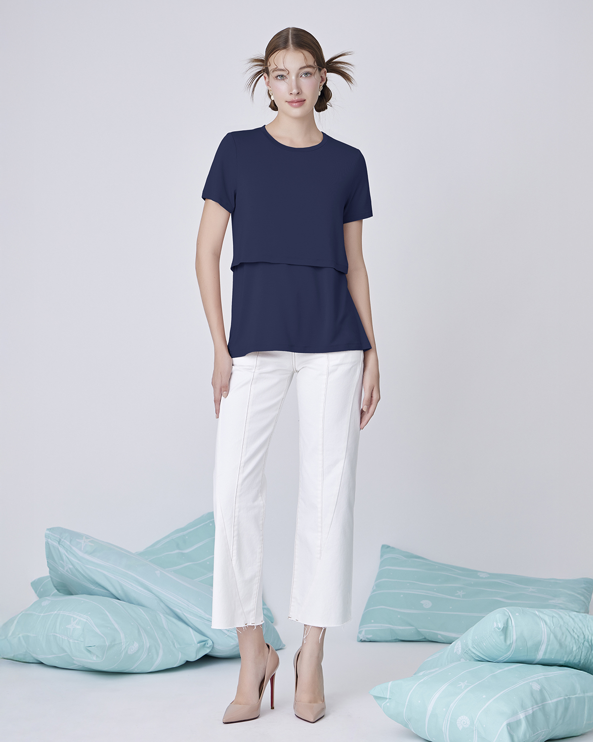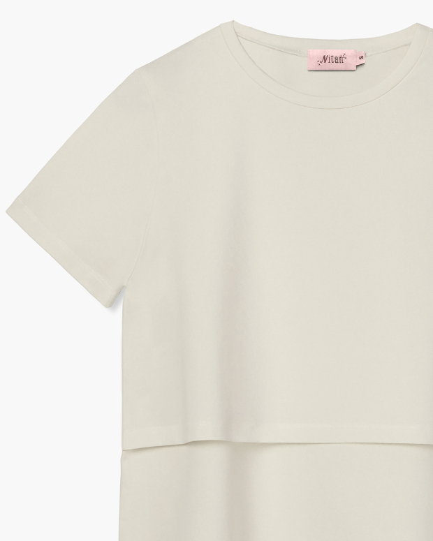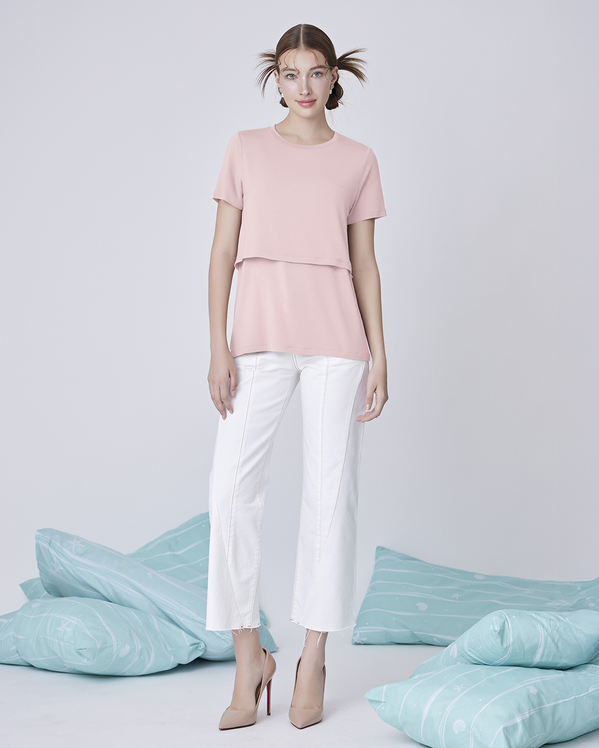 เสื้อให้นมบุตรและคลุมท้อง แขนสั้น เนื้อผ้าเนียนนุ่ม สวมใส่สบาย ไม่ร้อน ให้นมบุตรสะดวก ให้คุณแม่พร้อมเสมอสำหรับการให้นมบุตรทั้งในบ้านและนอกบ้าน