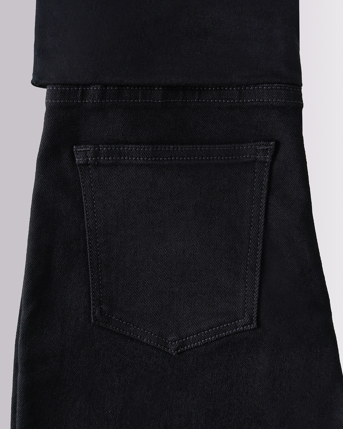 กางเกงยีนส์พยุงครรภ์ กางเกงยีนส์คนท้องทรงขากระบอก ช่วยให้คุณแม่ดูดี และช่วงพยุงท้องทำให้คุณแม่ไม่รู้สึกหน่วงท้องเมื่อท้องขยายใหญ่ขึ้น  รูปทรงและการตัดเย็บของกางเกงยีนส์คนท้องถูกออกแบบมาอย่างดีเพื่อโค้งรับช่วงท้องของคุณแม่ ให้โอบอุ้มและสวมใส่ได้สบายตลอดทั้งวัน และยังช่วยป้องกันไม่ให้โลชั่นทาหน้าท้องเปรอะเปื้อนเสื้อผ้า เนื้อผ้าช่วงของกางเกงพยุงครรภ์มีความยืดหยุ่นสูงมาก บริเวณช่วงเอวสามารถยืดได้ตามสัดส่วนของผู้สวมใส่ สามารถนำไปมิกซ์แอนด์แมตช์กับเสื้อชิ้นอื่นเพื่อเพิ่มความคล่องตัว ช่วยอำพรางให้เรียวขาดูเล็กกระชับได้รูป