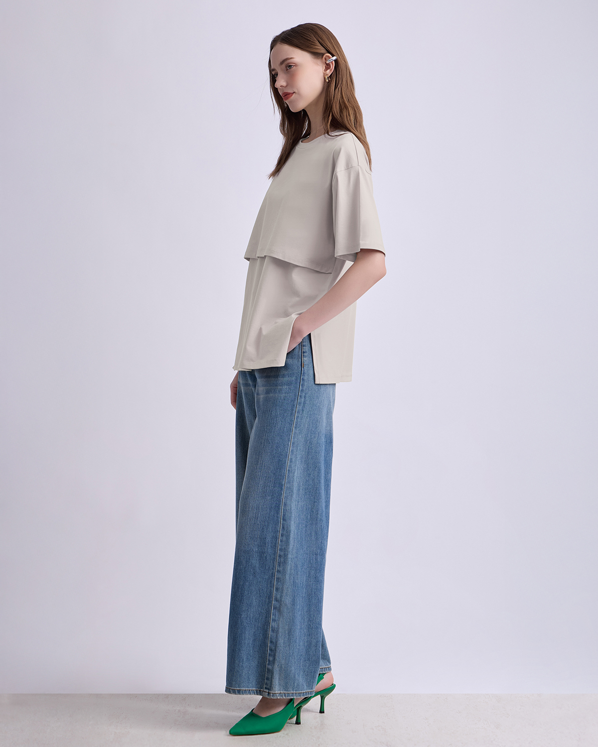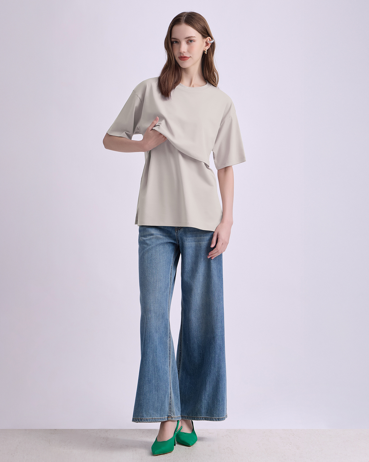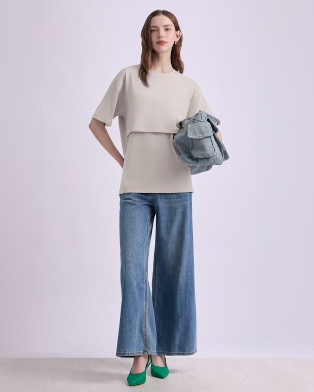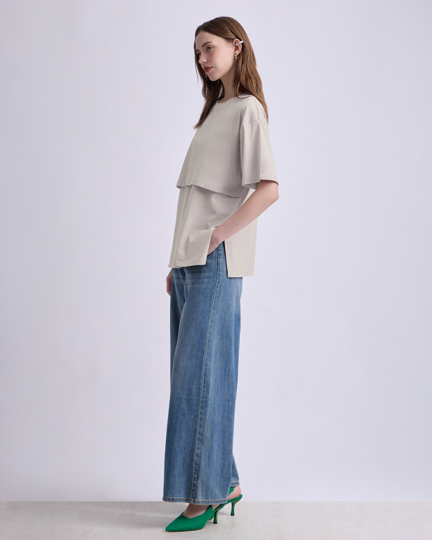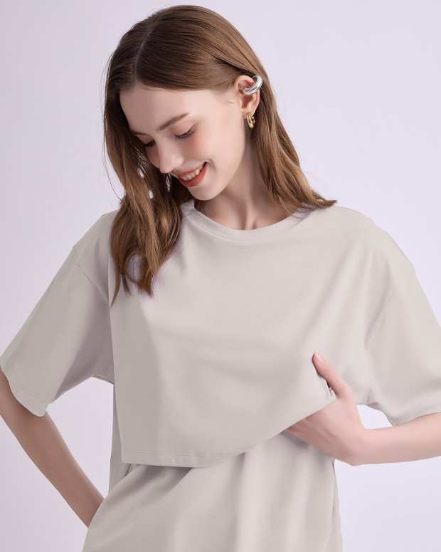 เสื้อให้นมบุตรแขนสั้น ทรง ovesize เนื้อผ้านุ่มมาก สวมใส่สบาย ไม่ร้อน ให้นมบุตรสะดวก ให้คุณแม่พร้อมเสมอสำหรับการให้นมบุตรทั้งในบ้านและนอกบ้าน