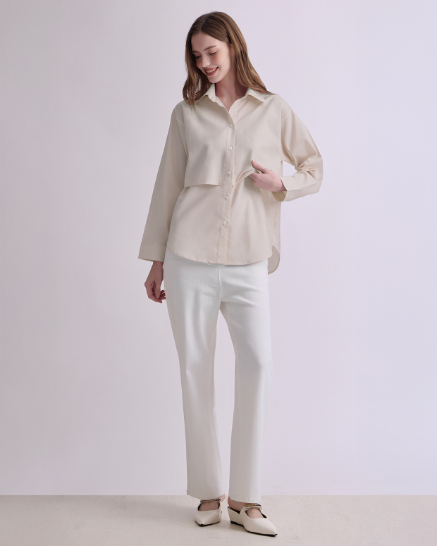 เสื้อเชิ้ตให้นมและคลุมท้องดีไซน์มินิมอลที่ตอบโจทย์คุณแม่ยุคใหม่ ผลิตจากผ้าคอตตอนคุณภาพดี เนื้อเนียนละเอียด ให้สัมผัสนุ่มสบายในทุกการเคลื่อนไหว ดีไซน์เปิดให้นมด้านหน้าเพื่อเพิ่มความสะดวกในการให้นมให้ถึงขีดสุด ทำให้ดูไม่ทุกลักทุเลหรือโป๊เวลาให้นมและปั๊มนม เหมาะสำหรับทั้งวันทำงานและวันสบาย ๆ ใส่ได้หลายโอกาส ทำให้คุณแม่มีความสุขในการให้นมบุตรมากขึ้น