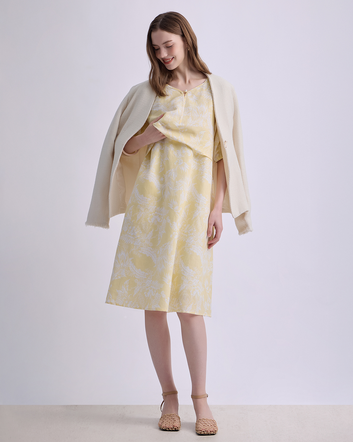 ชุดคลุมท้องและเดรสให้นมผ้าลินินนำเข้า เปิดให้นมจากด้านหน้า เนื้อผ้าระบายอากาศดี สวมใส่สบายสุด ๆ ทรงเอช่วยอำพรางสัดส่วนได้อย่างลงตัว สีเหลืองพาสเทลให้ลุคสดใส เหมาะสำหรับวันสบาย ๆ หรือออกงานกลางวัน