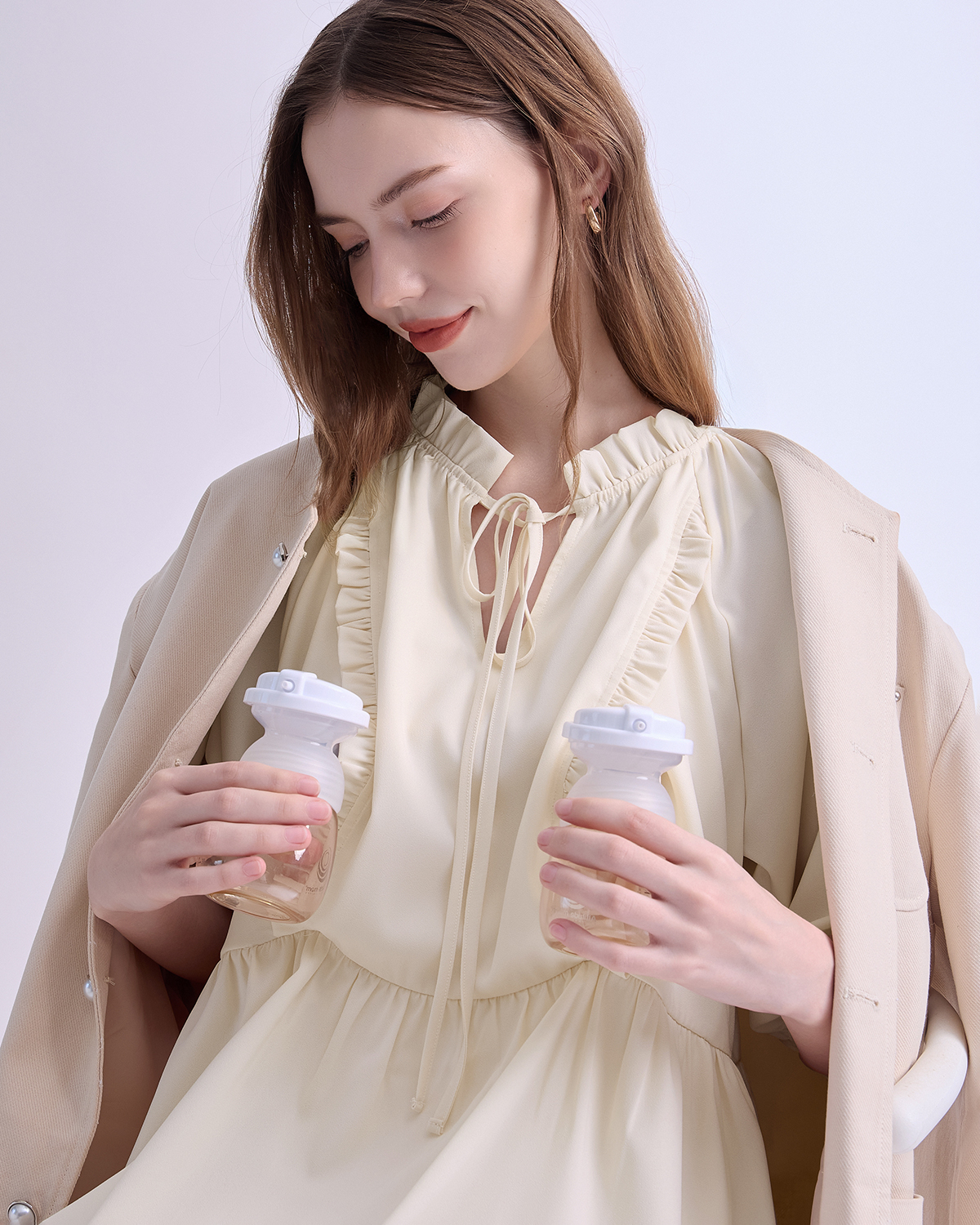 เดรสคลุมท้องและชุดให้นม เนื้อผ้าผ้าชีฟองนำเข้าจากเกาหลี เนื้อผ้าบางเบา พลิ้วไหว ซ่อนช่องให้นมไว้อย่างแนบเนียน ดีไซน์ระบายด้านหน้า เพิ่มความหวานละมุน เหมาะกับคุณแม่ที่ต้องการความเรียบง่ายแต่ยังดูอ่อนโยนและน่ารัก