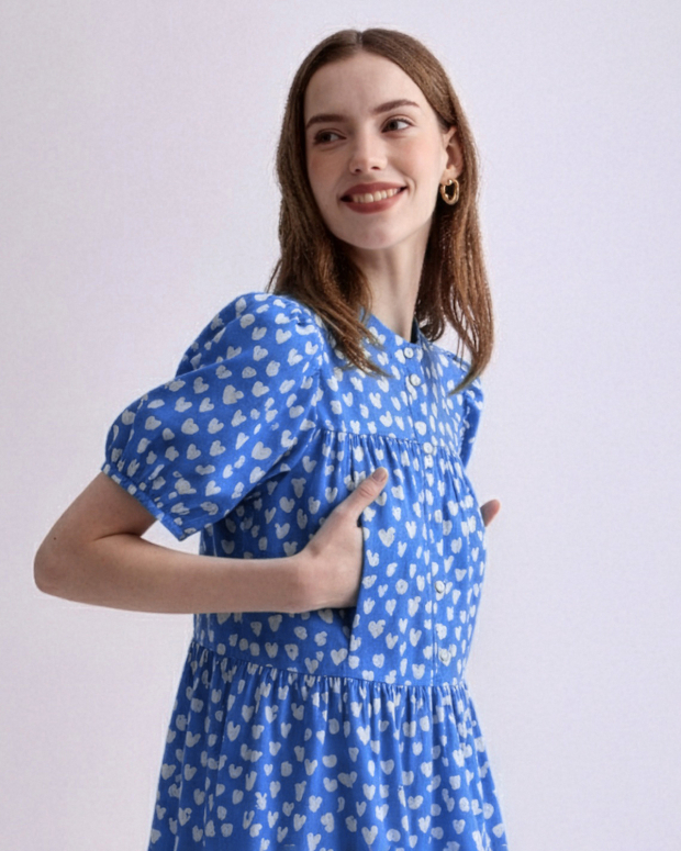 ชุดคลุมท้องและเดรสให้นมบุตร ปกคอจีน แต่งแขนตุ๊กตาเพิ่มความน่ารักให้คุณแม่ มีกระดุมด้านหน้ายาวไปจนถึงช่วงเอว ซ่อนฟังก์ชั่นช่องให้นมด้านหน้าเนียนเรียบไปกับชุด ดูไม่ออกว่าเป็นชุดให้นมบุตร ให้คุณแม่พร้อมเสมอกับการให้นมบุตรทั้งในบ้านและนอกบ้าน