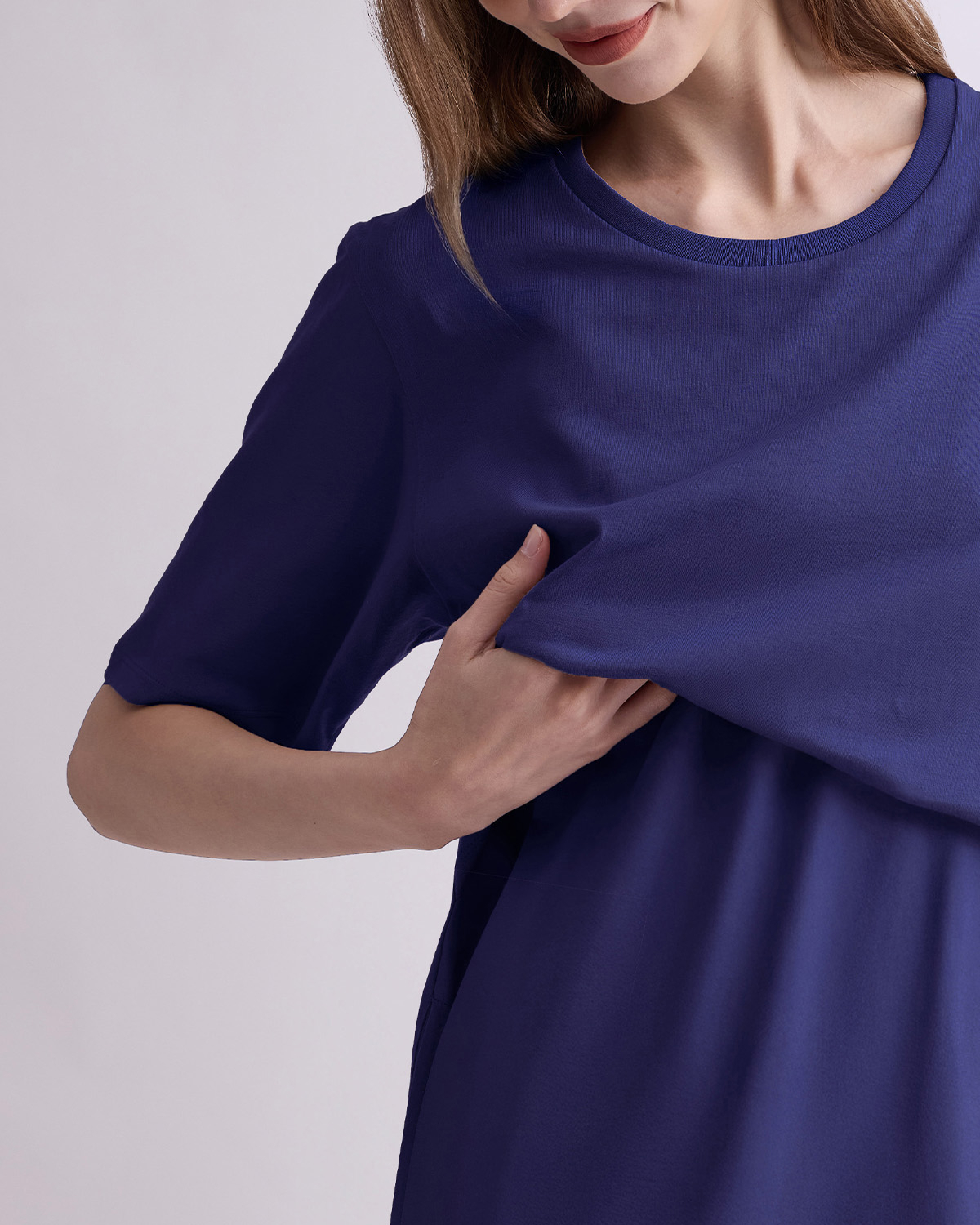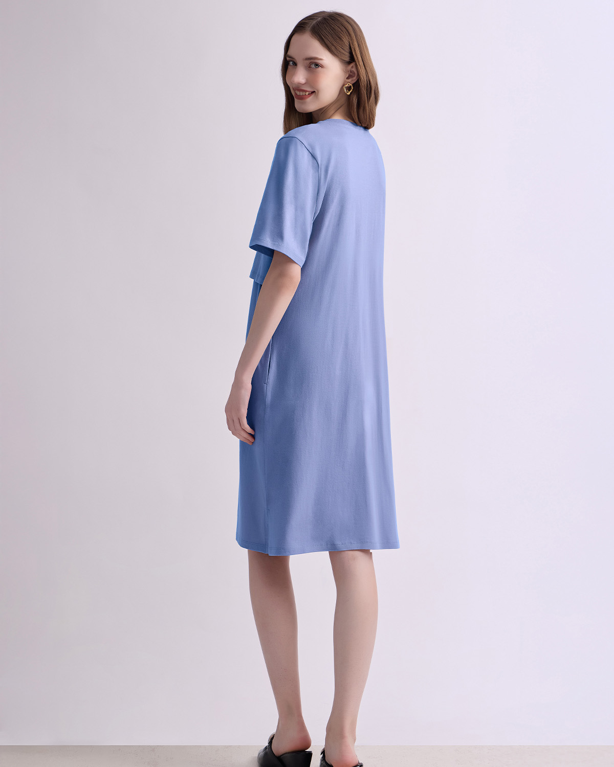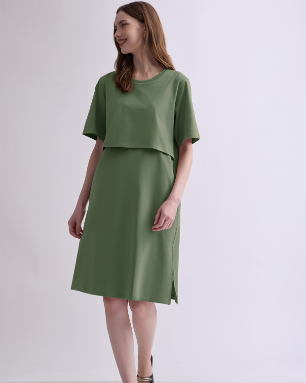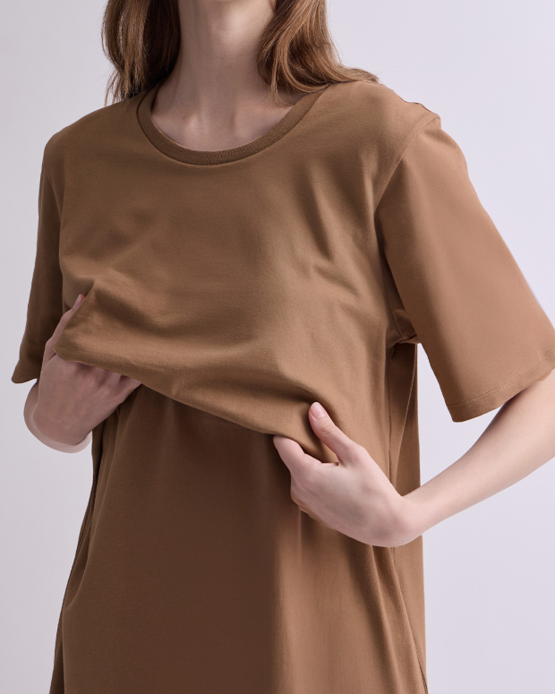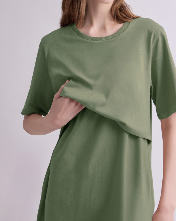 เดรสคลุมท้องและให้นมบุตรแขนสั้น เบสิกที่คุณแม่ทุกคนควรมี ทรงตรง ใช้งานง่าย ใส่ได้ในทุกวัน เนื้อผ้านุ่มสวมใส่สบาย ไม่ร้อน ด้วยผ้ายืดคอตตอน 100% ให้นมบุตรสะดวก ให้คุณแม่พร้อมเสมอสำหรับการให้นมบุตรทั้งในบ้านและนอกบ้าน