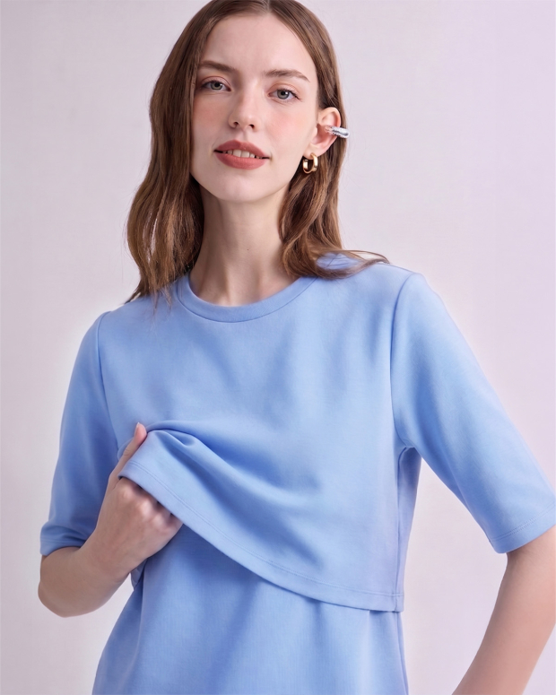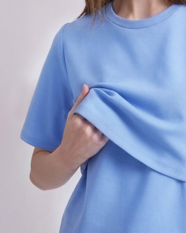 เสื้อให้นมบุตรและคลุมท้องแขนสั้น ทรง oversize ใส่หลวมๆ เนื้อผ้านุ่มนิ่ม สวมใส่สบาย ไม่ร้อน ให้นมบุตรสะดวกสบาย ให้คุณแม่พร้อมเสมอสำหรับการให้นมบุตรทั้งในบ้านและนอกบ้าน