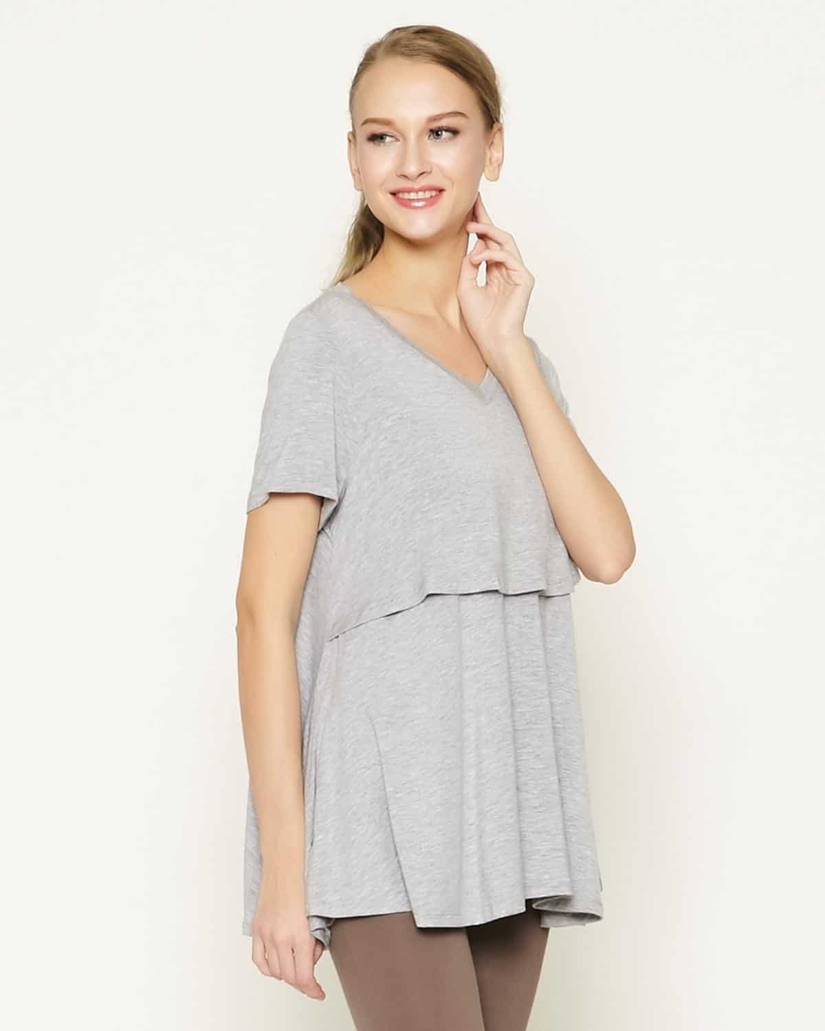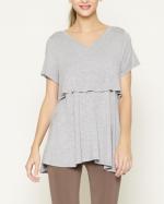 เสื้อให้นมบุตรแขนสั้น คอวี เป็นทรงหลวมๆ ไม่รัดรูป สามารถใส่คลุมท้องและช่วยอำพรางรูปร่างของคุณแม่หลังคลอดได้ เนื้อผ้านุ่มสบาย ไม่ร้อน ให้นมบุตรสะดวกสบายทั้งในบ้านและนอกบ้าน