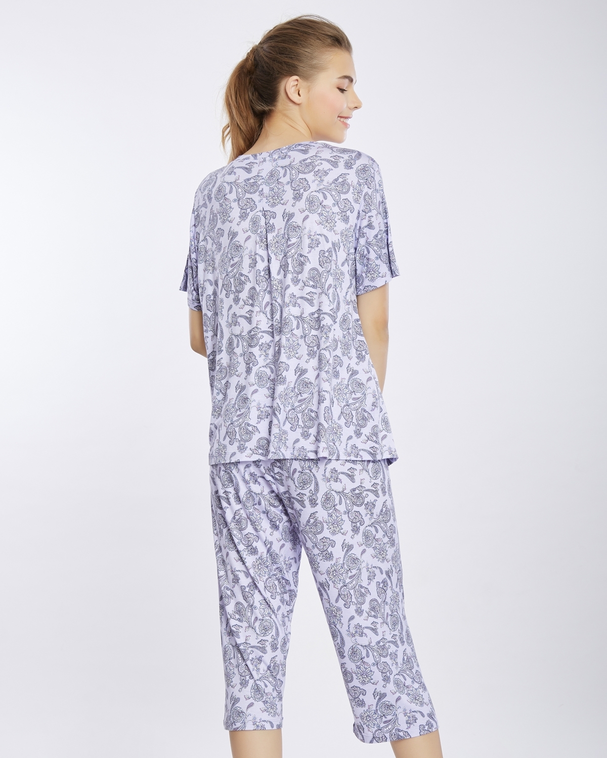 ชุดนอนให้นมบุตรแขนสั้น กางเกงขา 5 ส่วน เนื้อผ้านุ่มสวมใส่สบาย สามารถใส่เป็นชุดอยู่บ้านเพื่อเตรียมพร้อมรับมือกับเจ้าตัวน้อยและให้นมบุตรได้อย่างสะดวกตลอดเวลา