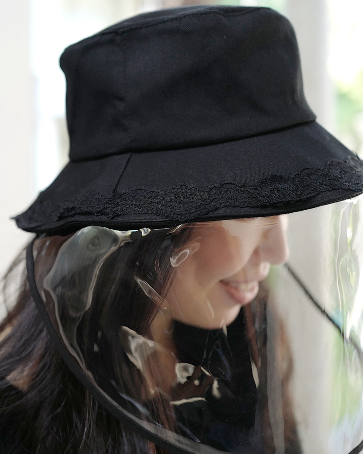 หมวกป้องกันละอองไอจาม ตกแต่งด้วยแถบลูกไม้ เพิ่มความหวาน